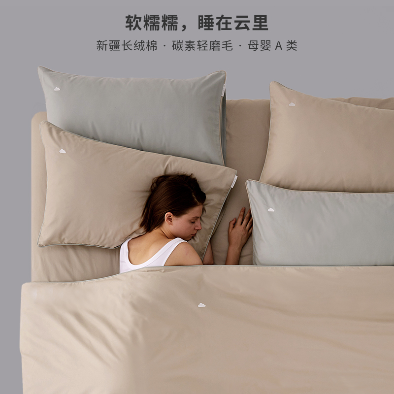 LaSuntin double-sided abrasive wool pure cotton four-piece full cotton thickened pure colour bedsheet Quilt Cover Bedding bedding