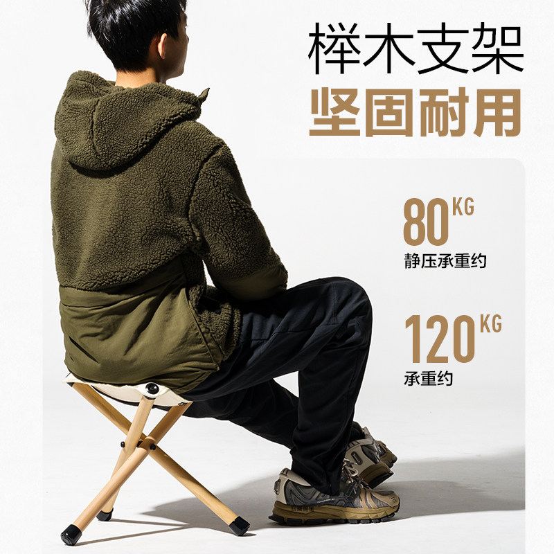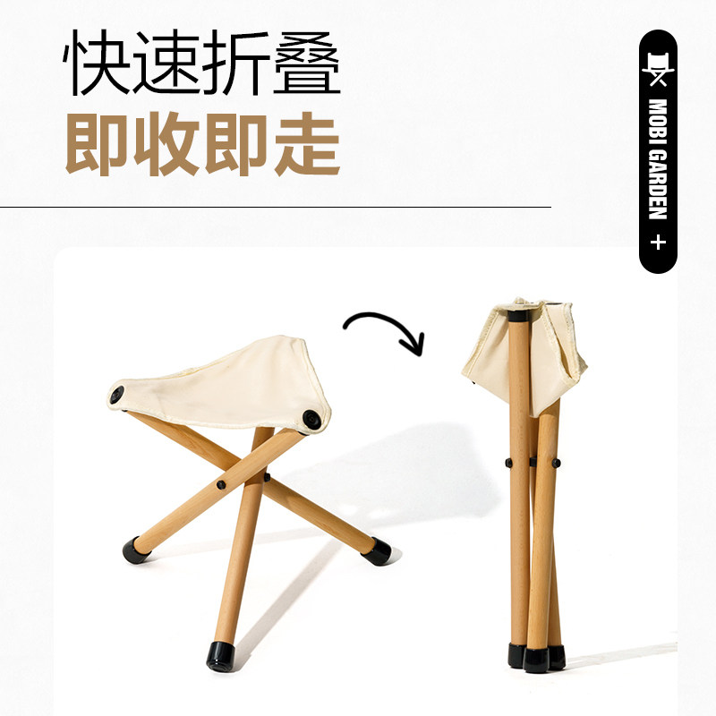 Pastoral Flute Outdoor Folding Chair Solid Wood Triangular Stool Small Matzah Chair Portable Camping Park Bench Casual Chair