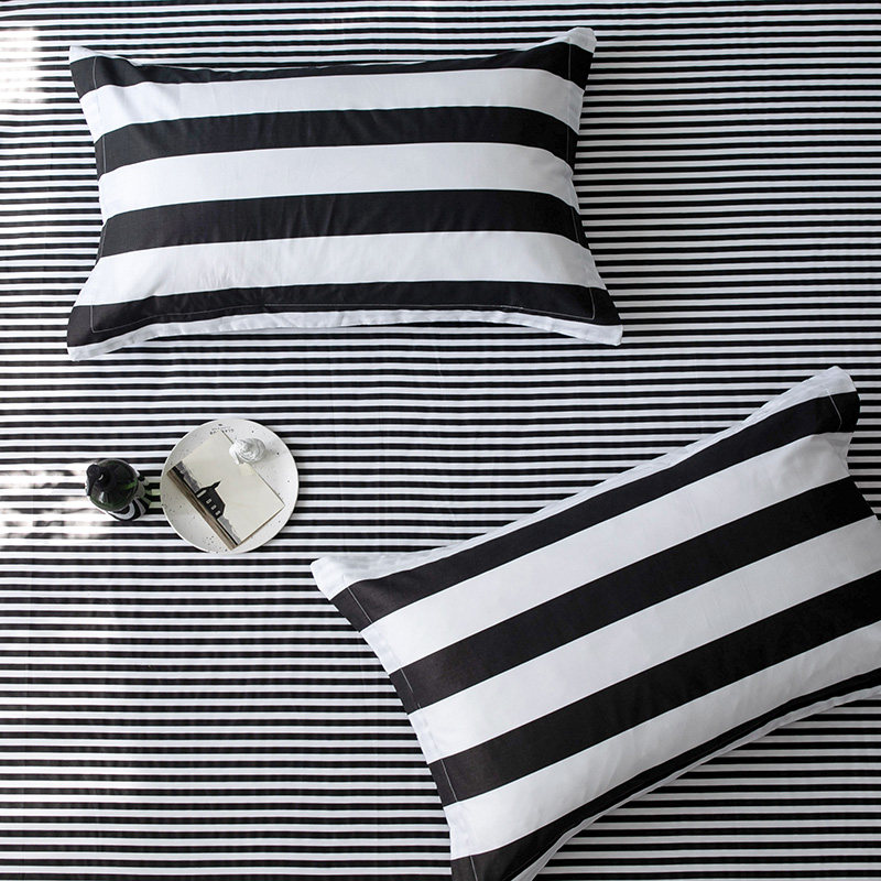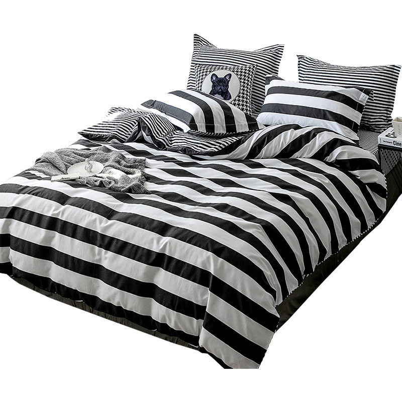 Four-piece set of pure cotton 100 cotton simple striped bed sheet European and American style black and white personality quilt cover 1 2 bed cover three-piece set