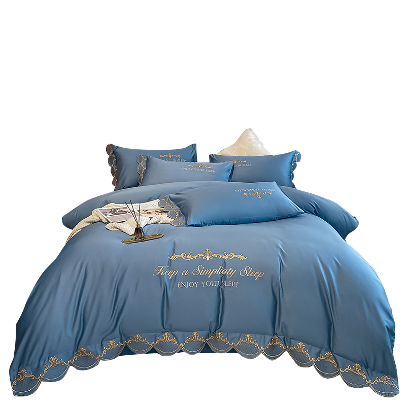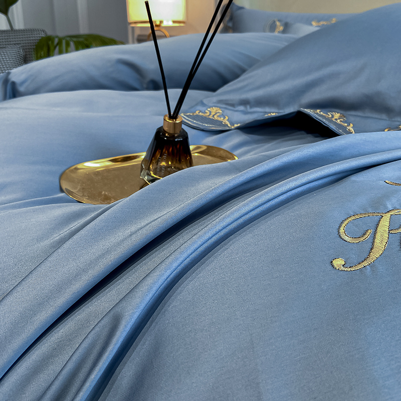 Flangkadan pure cotton four piece cotton simple embroidery pure color set sheet all cotton spring and autumn bed supplies 4