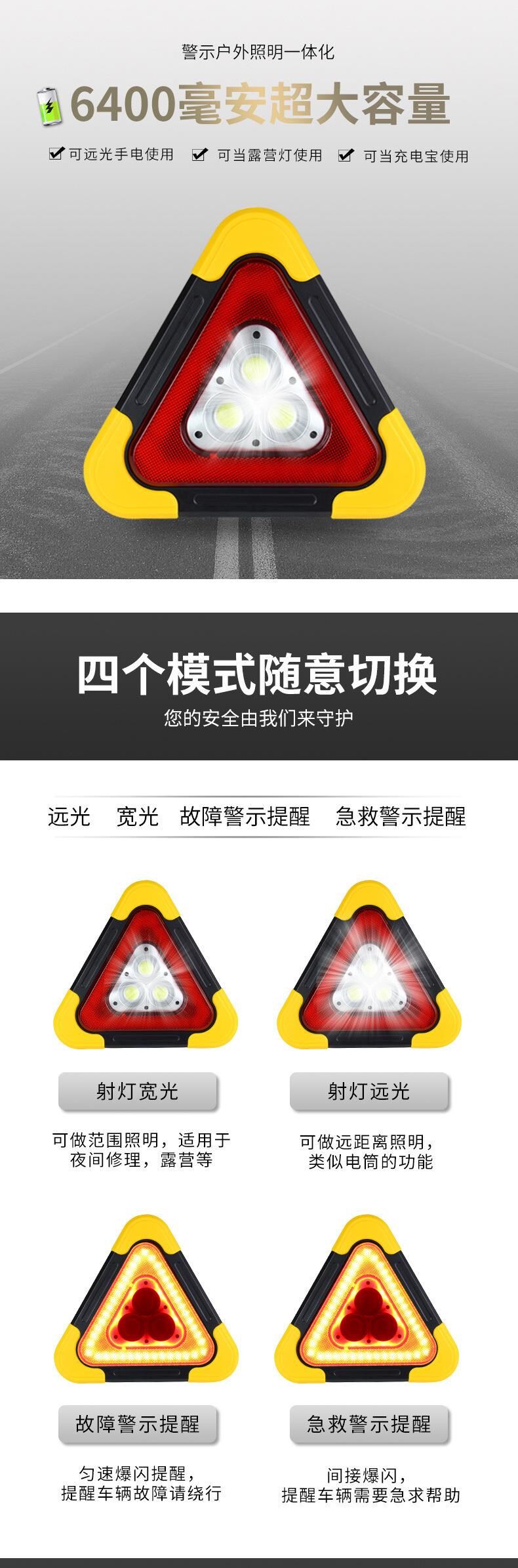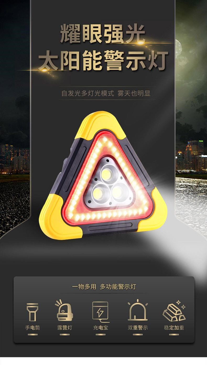 Junhao Department Store Multifunctional Outdoor Triangle Emergency Lighting Car Tripod Vehicle Warning Sign Solar Warning Light