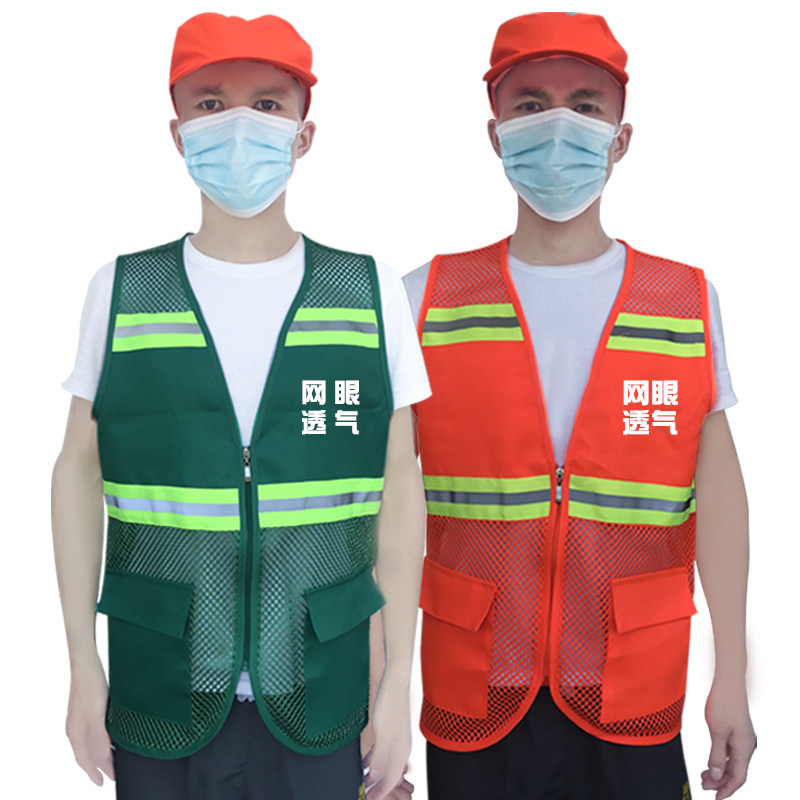 Sanitation worker Summer mesh waistcoat Clean Work Gardener Green Reflective Mesh Breathable Vest Safety Suit
