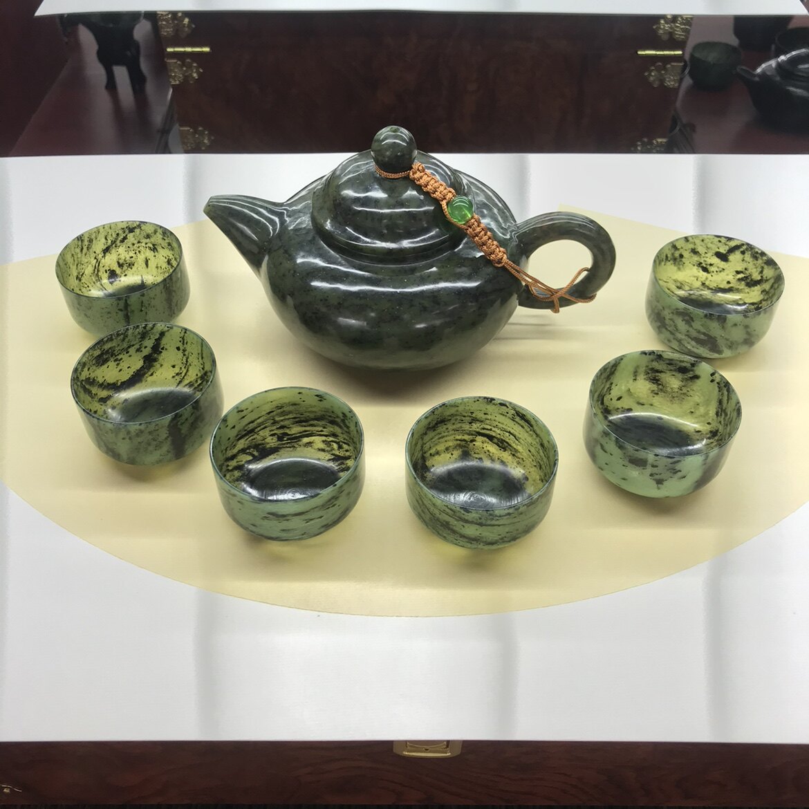 Wine Springs Night Light Cup Qi Lian Jade Boutique Tea Set Old Pit Material Light Pot Suit Wu Shan Mandarin Jade Ink Jade Tea Ware