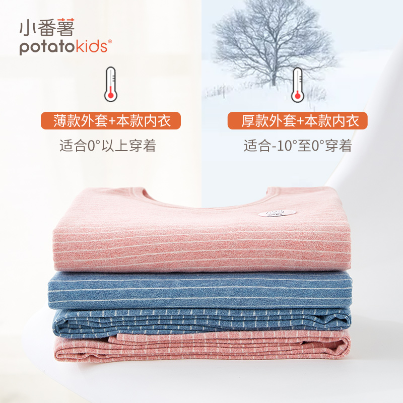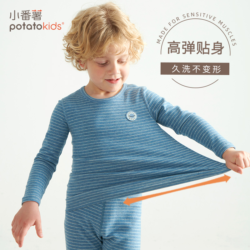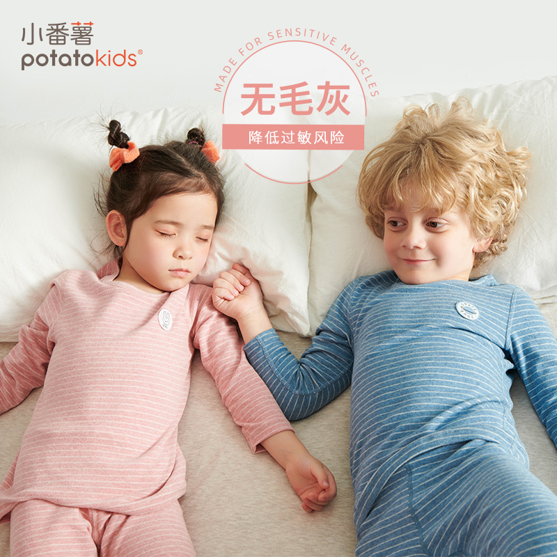 Little sweet potato children's wool thin strip thermal underwear set 2022 autumn and winter boys and girls thick autumn clothes and long johns