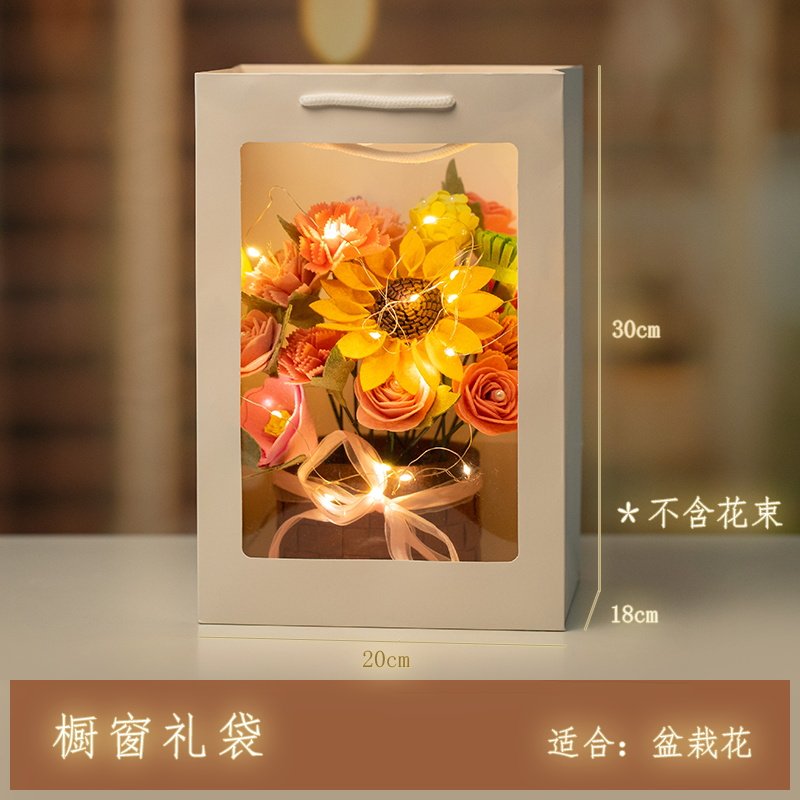 Glue gun warm white light Showcase Gift Bag 20x30x13 (suitable for small bouquet) SHOP WINDOW GIFT BAG 20x30x18 (suitable for potted flowers) transparent gift bag (suitable for 9 sunflower large