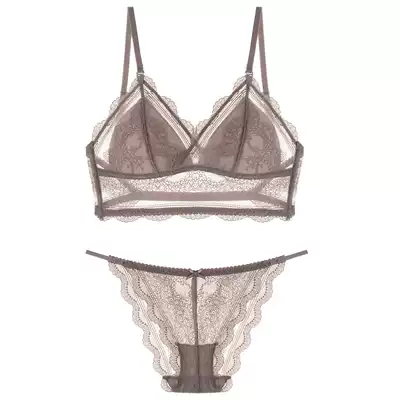 Sexy French backless underwear women Summer thin lace big U triangle cup bra bra set