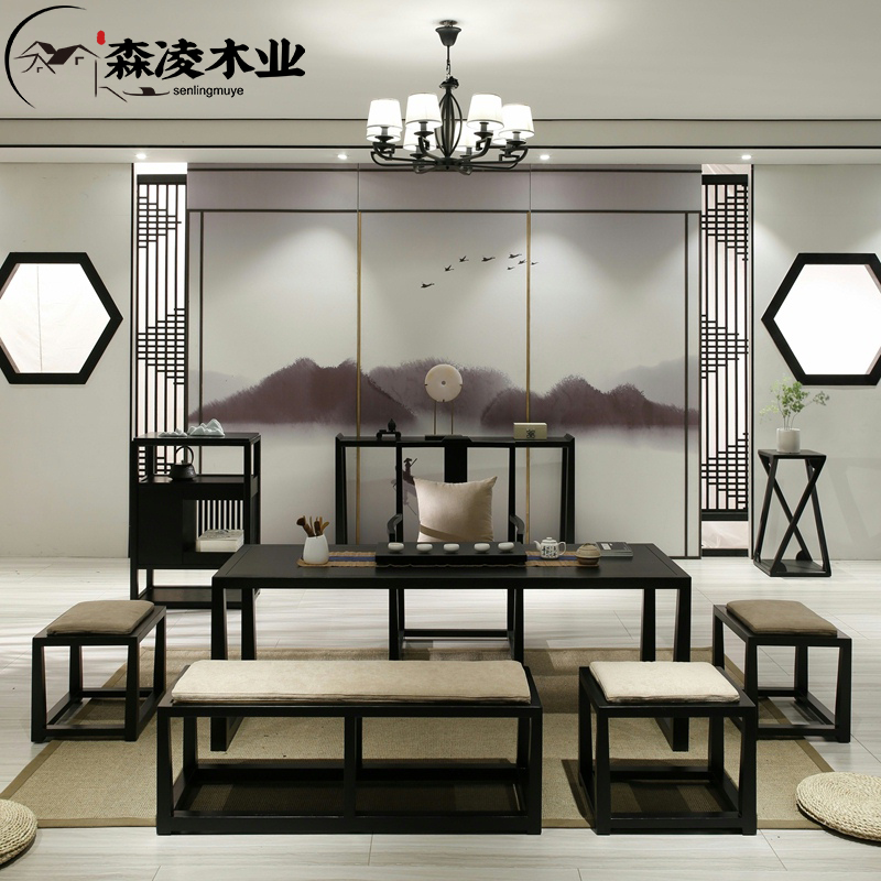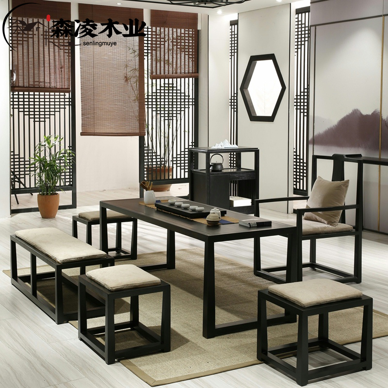 New Chinese-style tea table and chair combination simple modern solid wood Zen tea table tea table kung fu tea art office furniture
