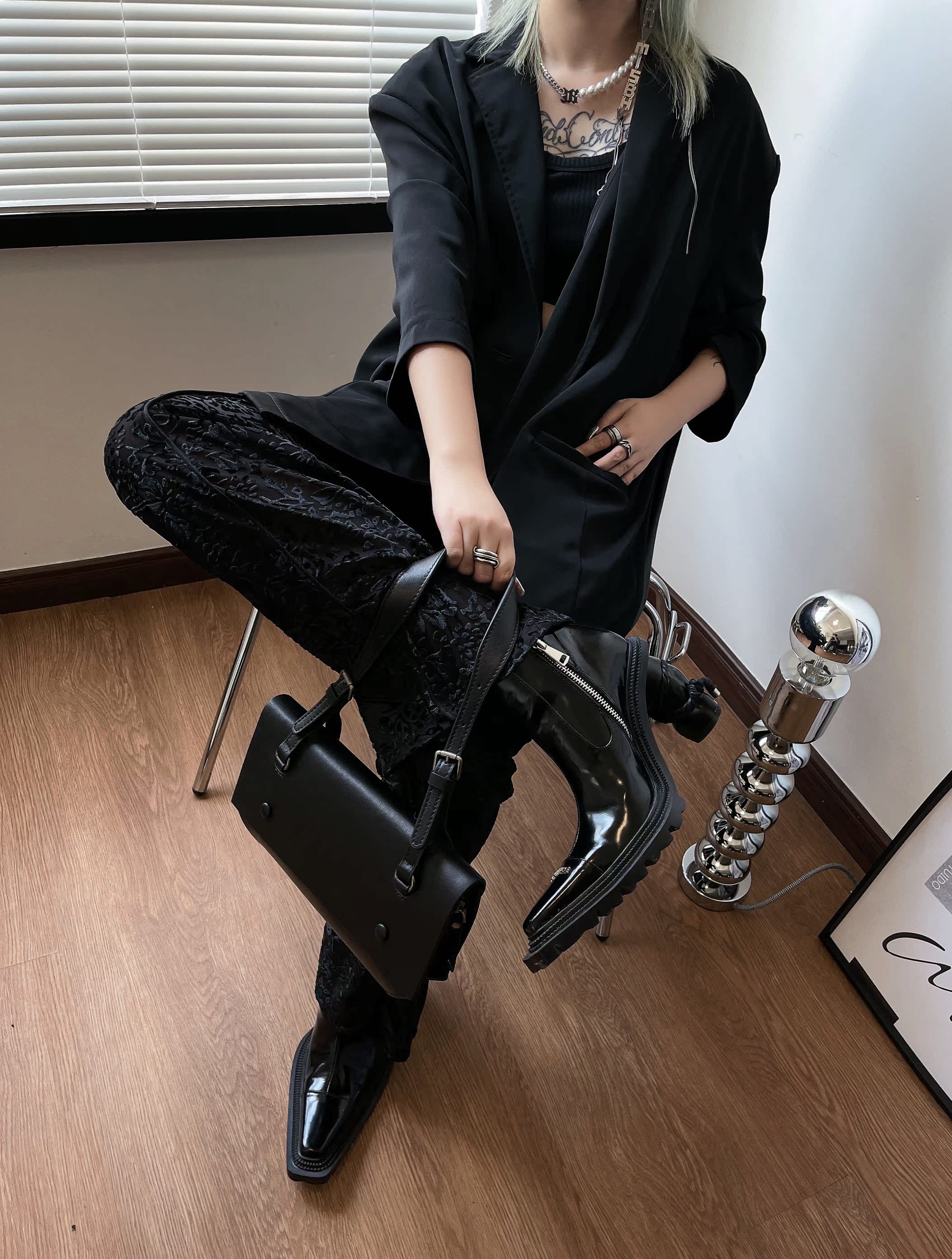 FTM$ New products Niche Fashion Black Head Layer Bull Leather Handbag Armband Satchel Satchel Bag for men and women
