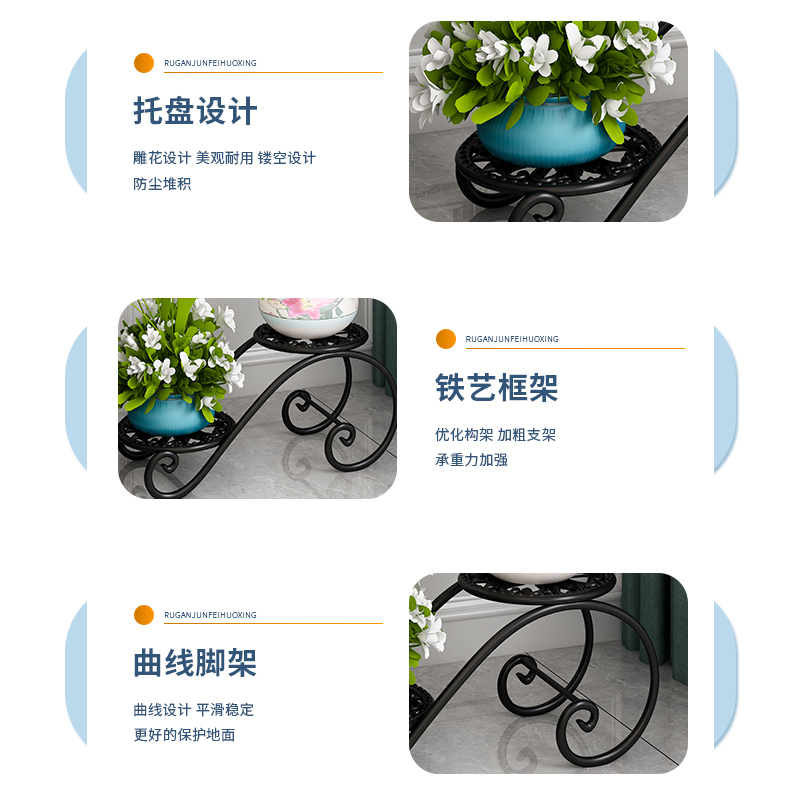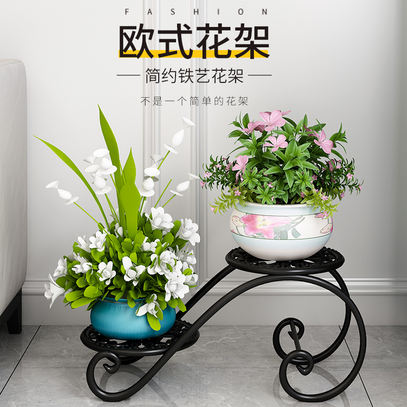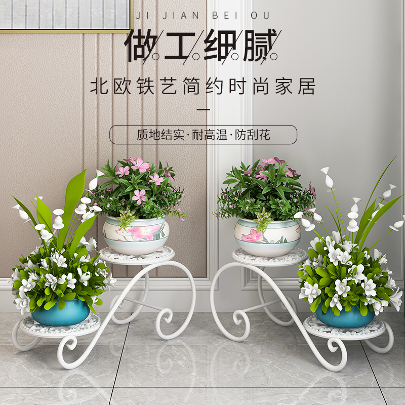 Flower shelf living room floor-to-ceiling simple modern wrought iron flower pot rack indoor gold Kudzu net red flower rack shelf Yang Tai