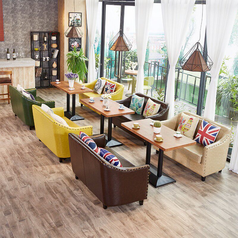 Modern minimalist leather sofa ktv private room clearing bar card seat milk tea cafe hot pot restaurant restaurant table and chair combination