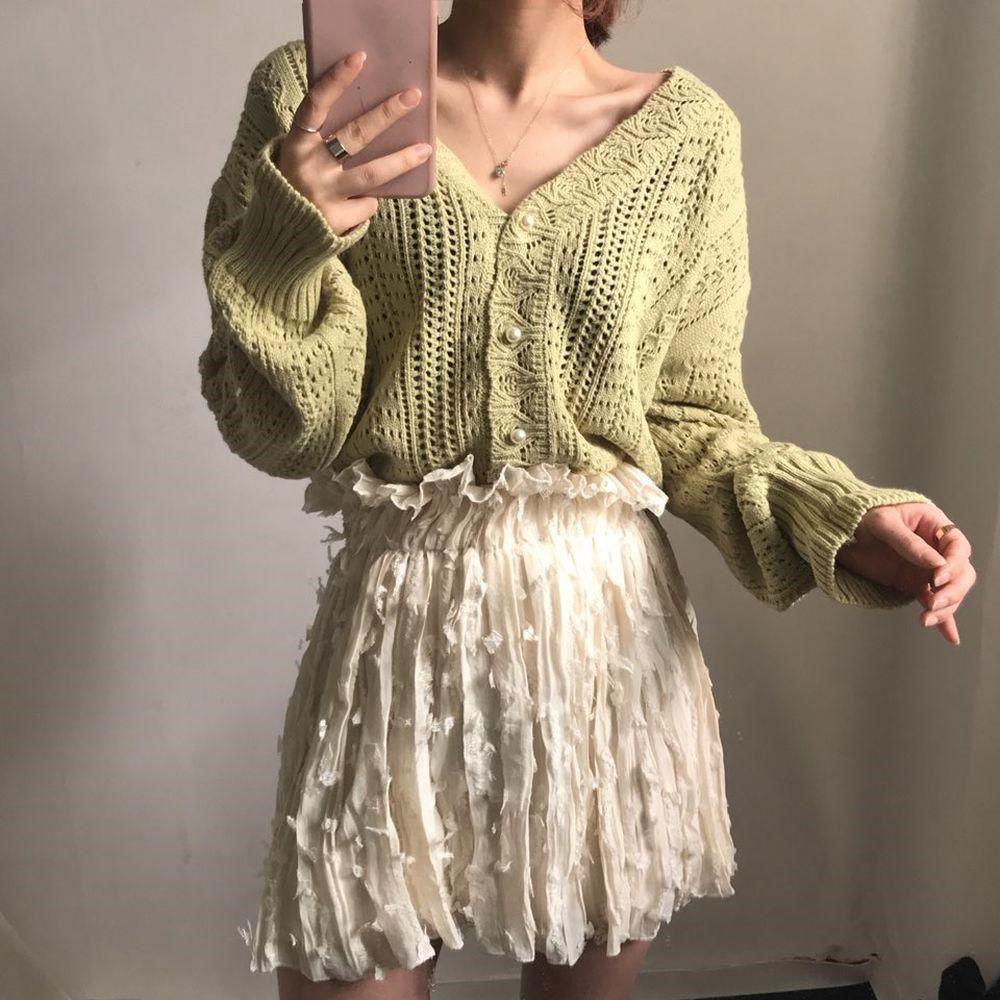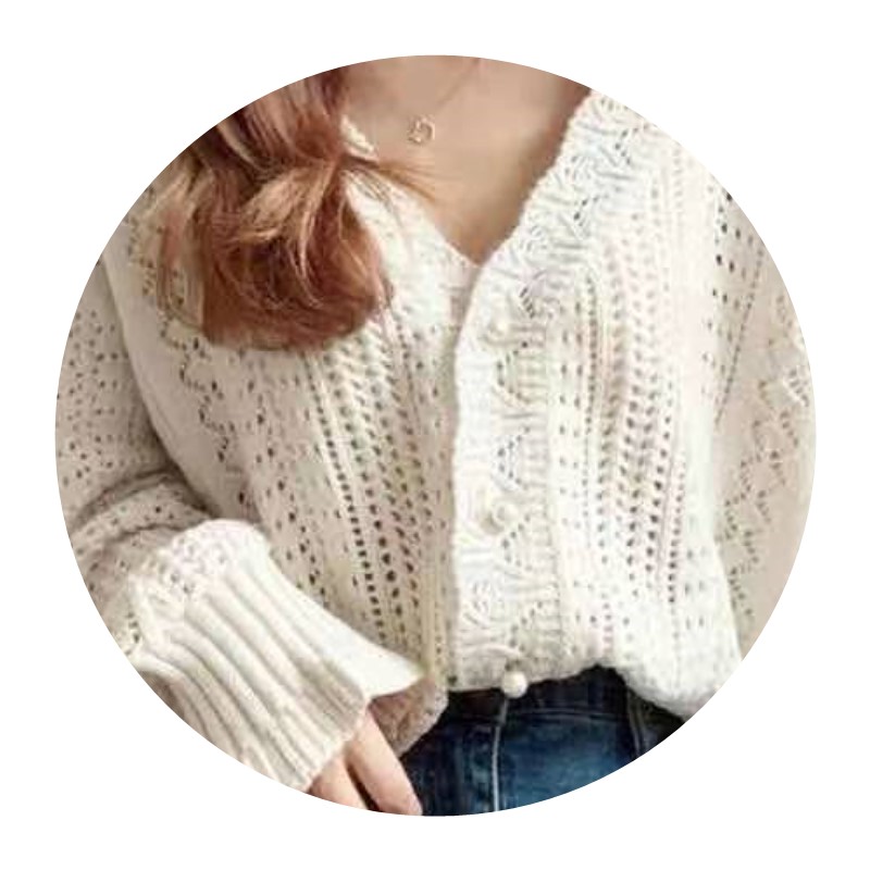 Ghost Horse Girl Korea Chic Retro Crochet Lace Hollow Sweet Foreign Style Age Reduction Joker Knitted Cardigan Sweater