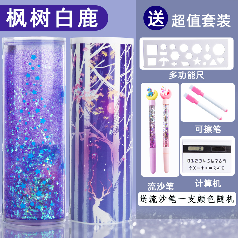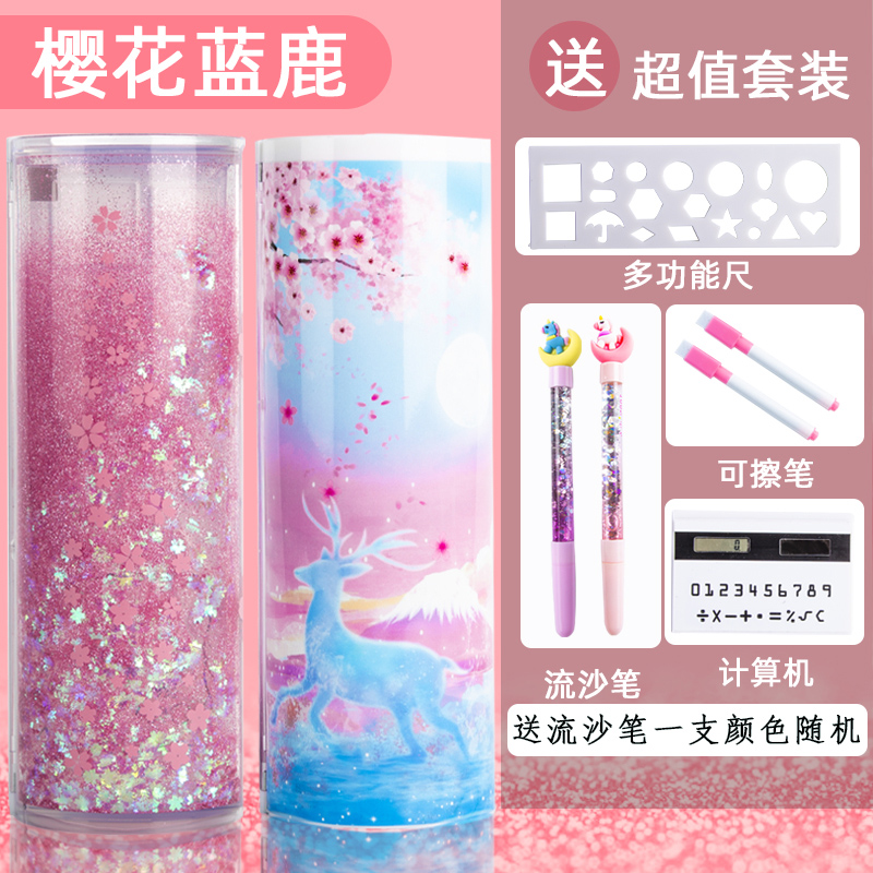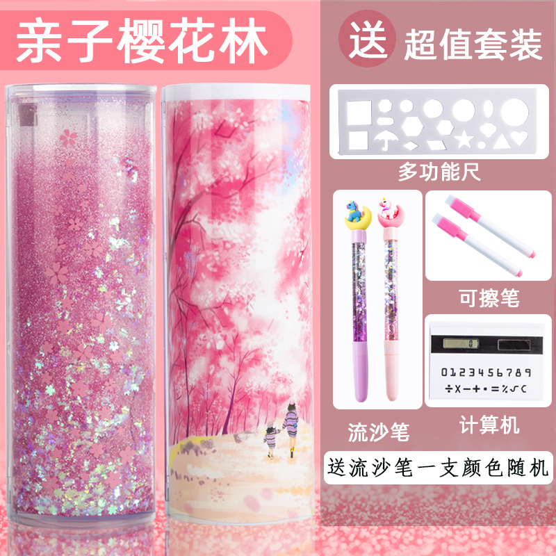 Creative Network Red Stream sand Lead Pencil Case Girl Multifunction Girls Elementary Schoolboy Streaming Sand Writing Case Plastic Kindergarten Children Ins Wind Double intake cylindrical 2021 New 1st year cute