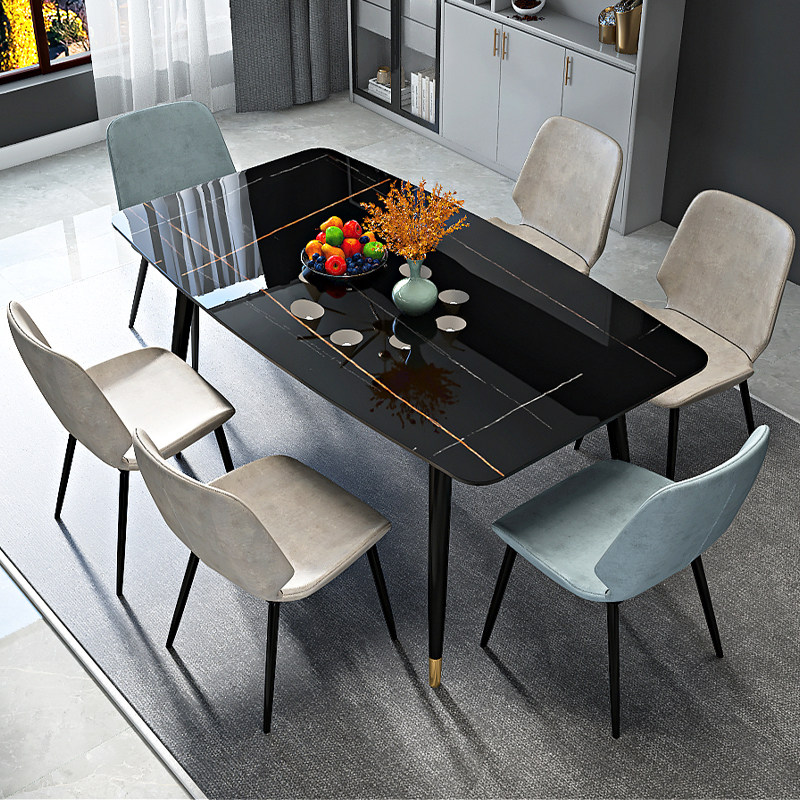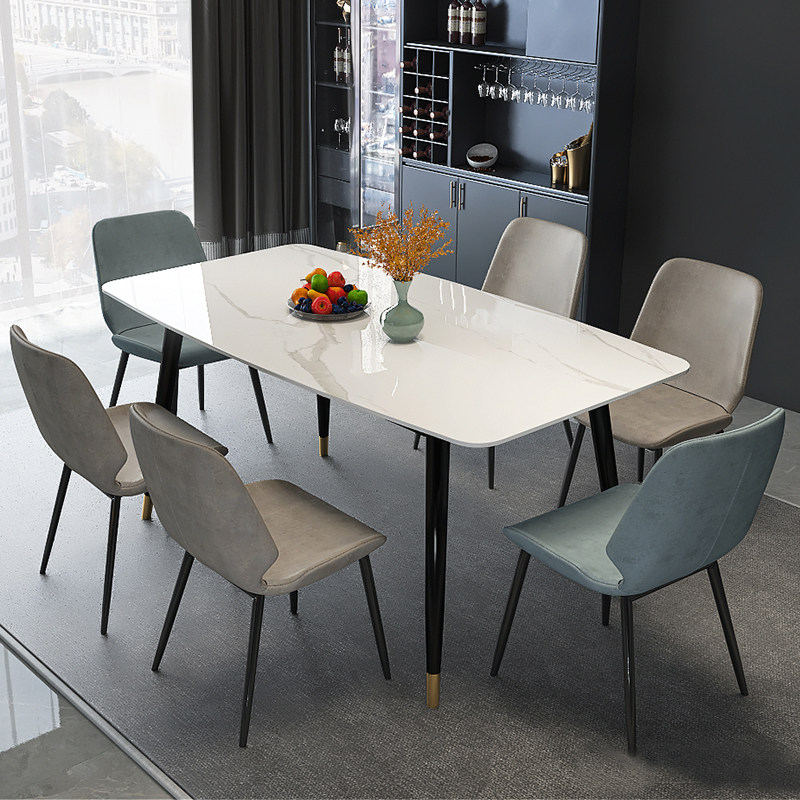Rock Plate Dining Table And Chairs Combine Household Small Household Type Table Nordic Dining Modern Minima Light Extravagant High-end Rectangular Table