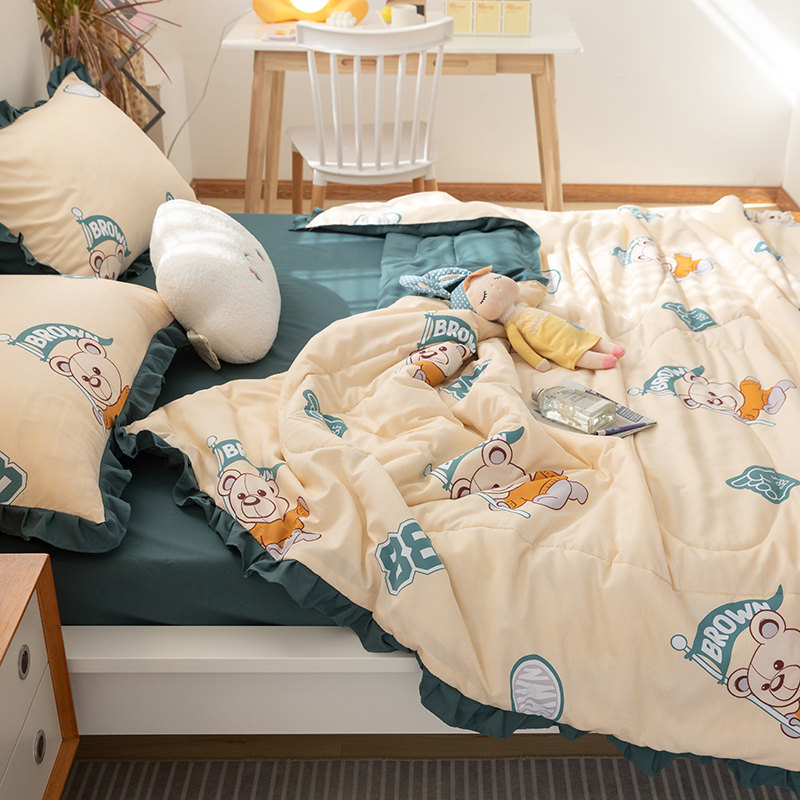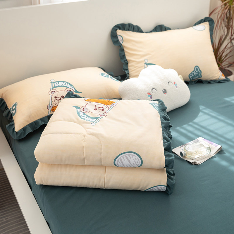 Washed cotton summer air conditioning quilt thin section summer cool quilt four-piece double machine washable spring and autumn single quilt summer
