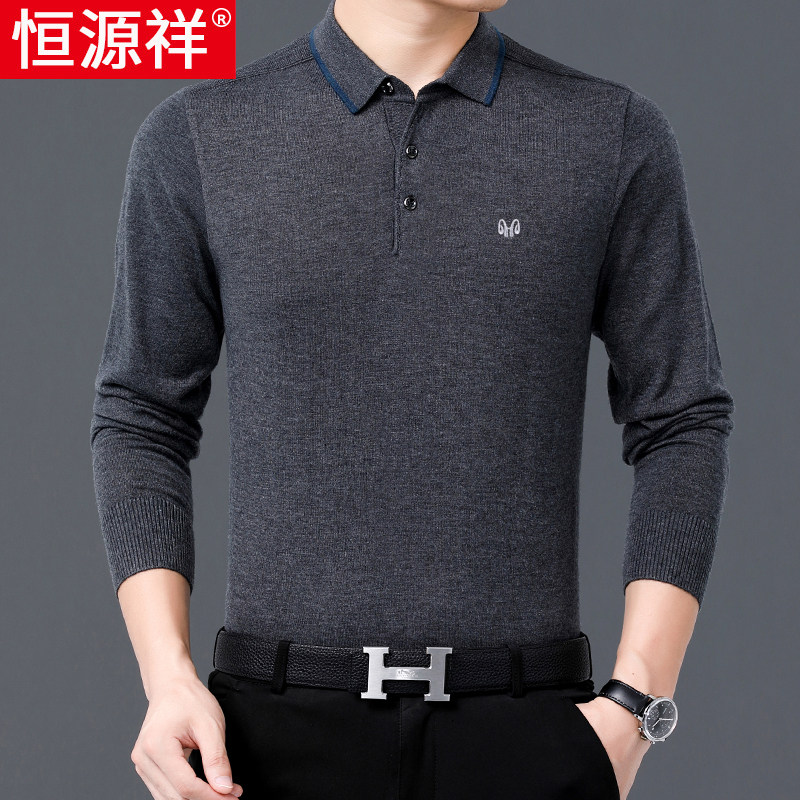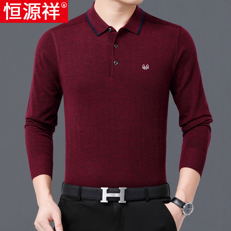 2022 autumn Hengyuanxiang cashmere sweater men's long-sleeved t-shirt middle-aged loose plus-size wool top dad outfit