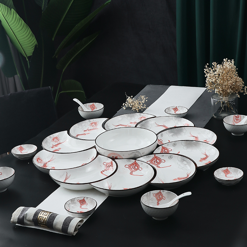 Year and year, there are more than moon lunar disc (27 pieces) year-round (52 pieces) year-round lunar disk (5) 9-inch soup bowl Year with more than moon lunar plate(10) 9