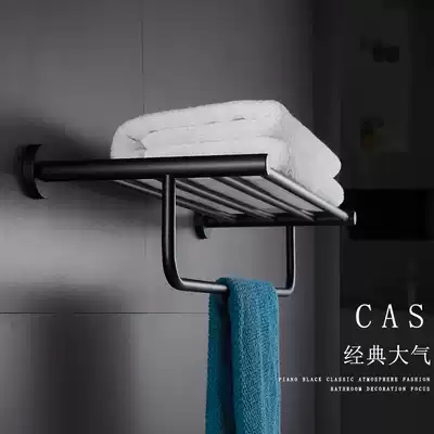 Powder room bath towel rack shelf 304 stainless steel black towel rod single and double rod drying towel rack Wall-mounted