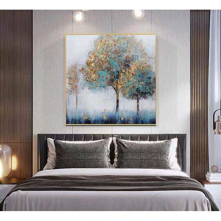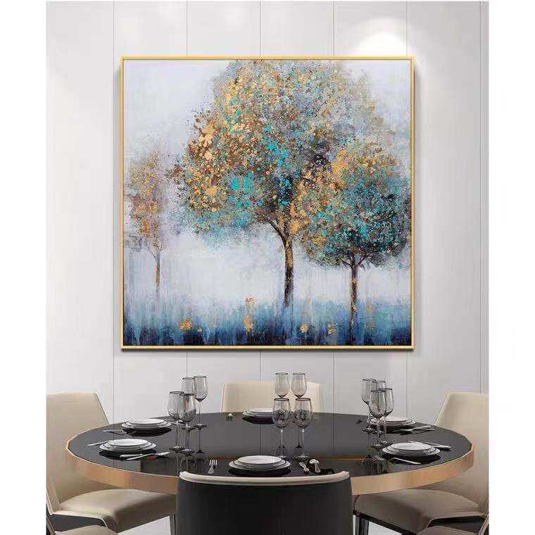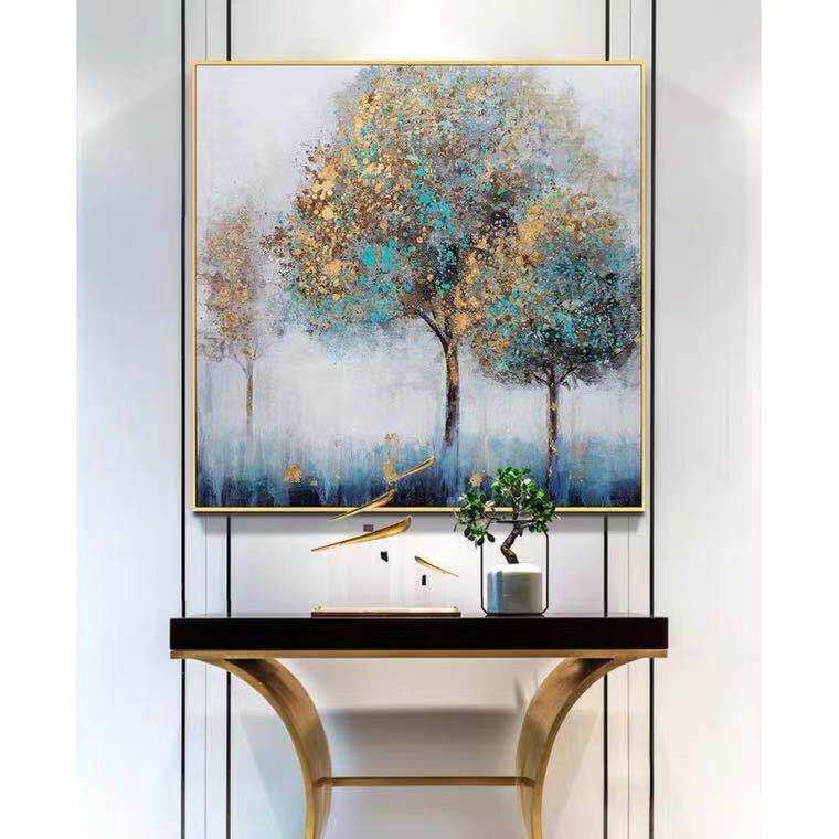 Hand-painted oil painting large-scale landing light luxury living room porch sofa rich tree decorative painting abstract modern minimalist hanging painting