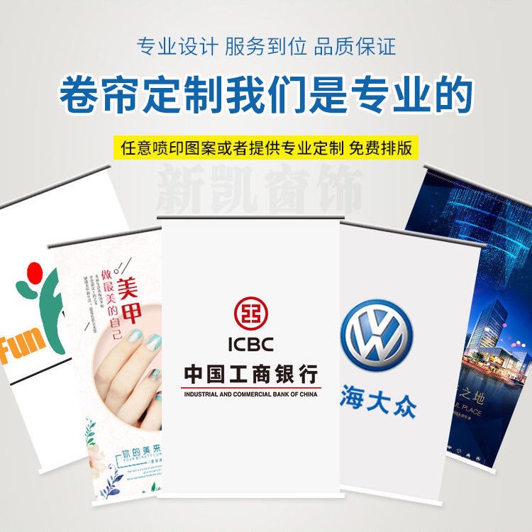 Customized office logo curtain sunshade advertising roller blind punch-free lifting roll-pull waterproof