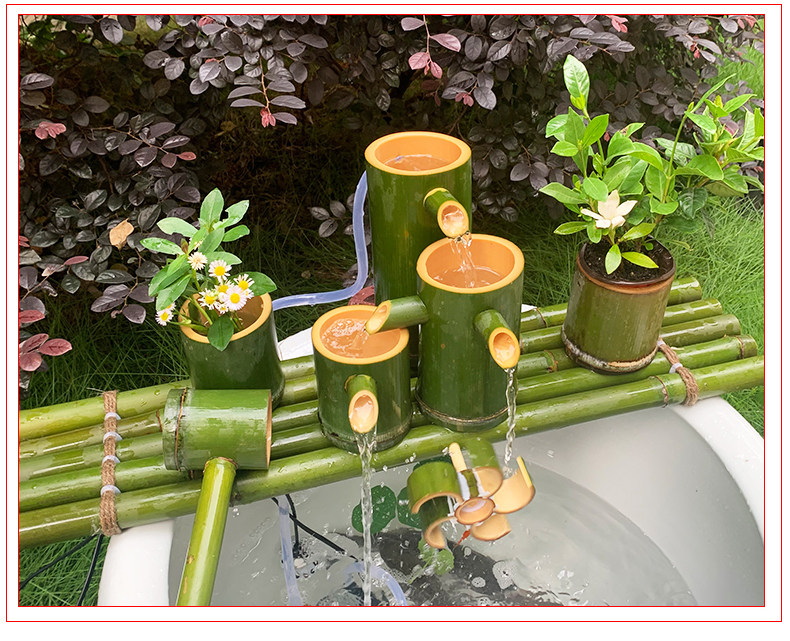 Bamboo Flowing Water Instrumental feng shui Wheel rigging with a basin ceramic fish tank with water pool for wet