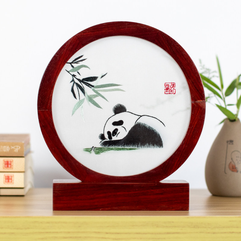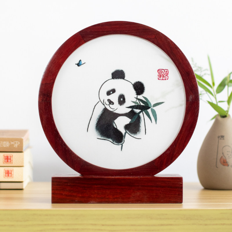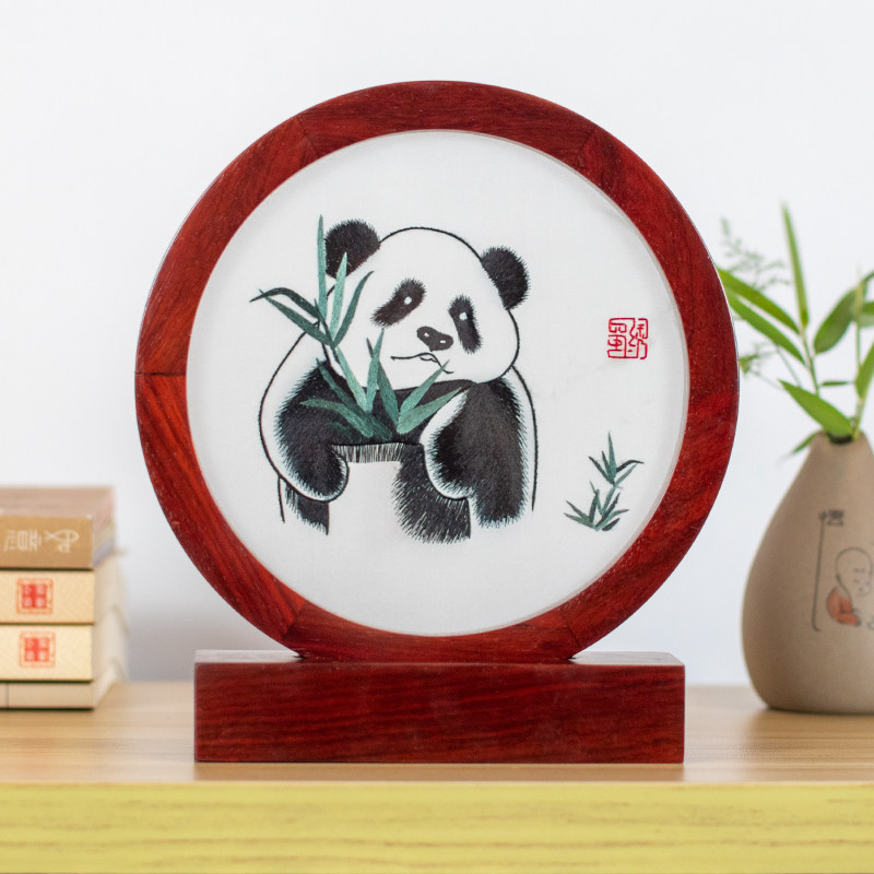 Shu embroidery writing panda double embroidery parts process gift abroad to send old foreign cute Chinese Fengdu hands gift