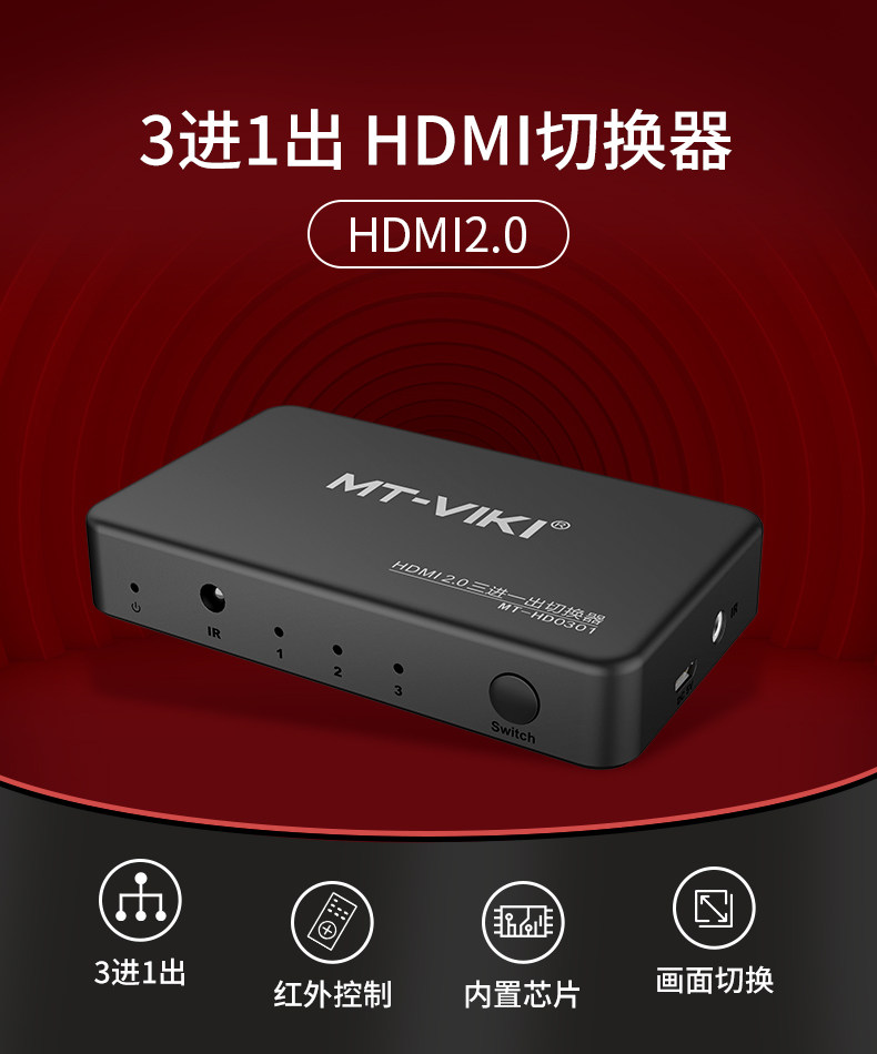 Maituo MT-HD0301 501 hdmi switcher three-in-2 0 version of high-definition 4K@60Hz computer film