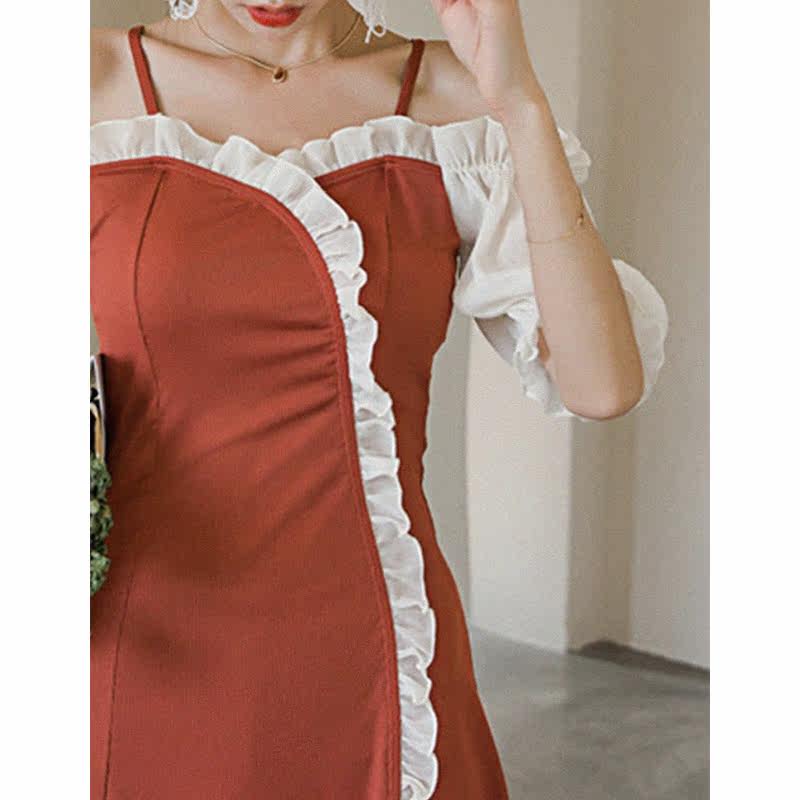 Large fishing conservative display slim fit with lotus leaf lace short sleeves Sexy hanging band Skirt Style Resort Spa Swimsuit Woman