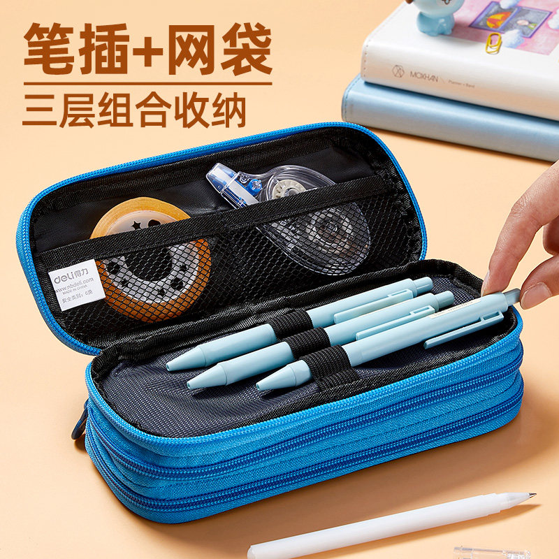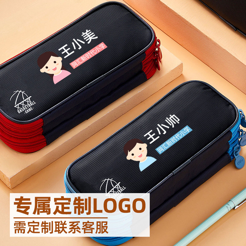 Powerful pencil bag large-capacity male high school student stationery box pencil case canvas custom printed LOGO simple multi-functional junior high school students boys primary school students 2020 new popular three-layer stationery bag