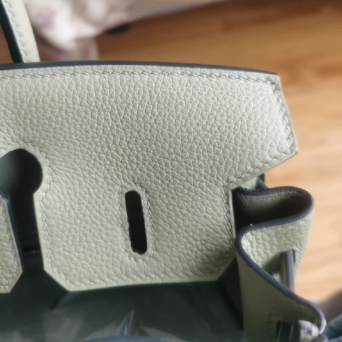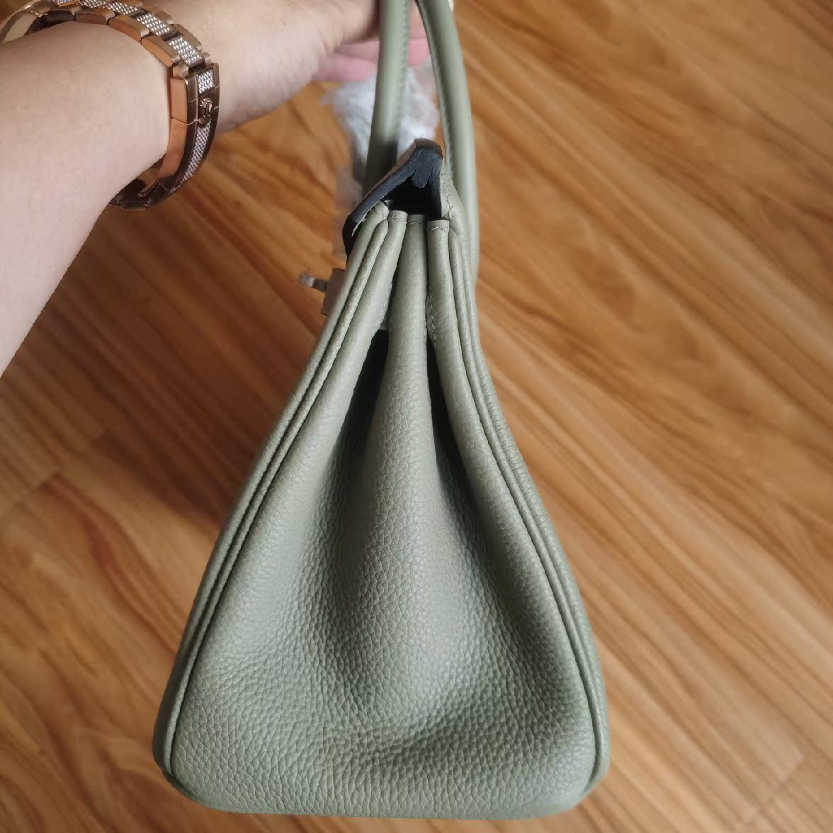 1Q sage green imported togo calfskin platinum 25cm hand-stitched Bk silver buckle handbag customization