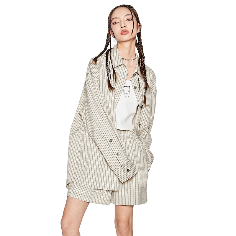 VIAPITTI Strip Set 2023 Woman Summer Gas Fashion Relax Short Sleeve Shirt