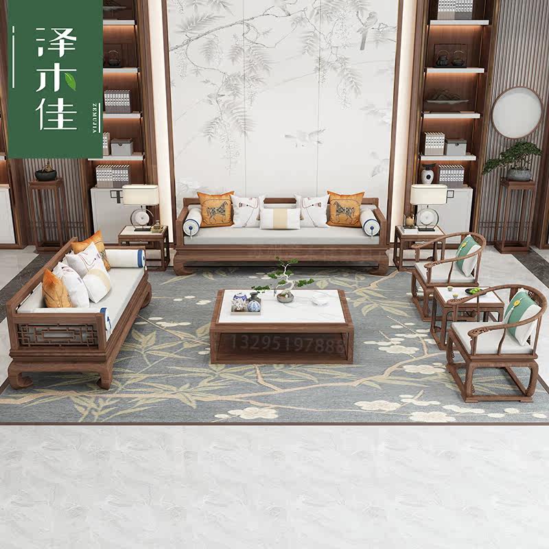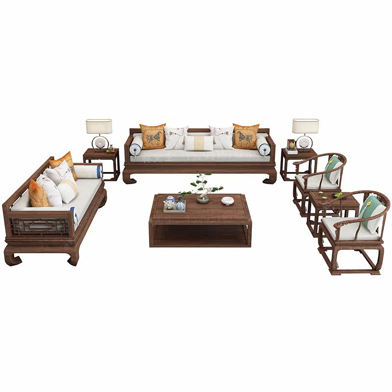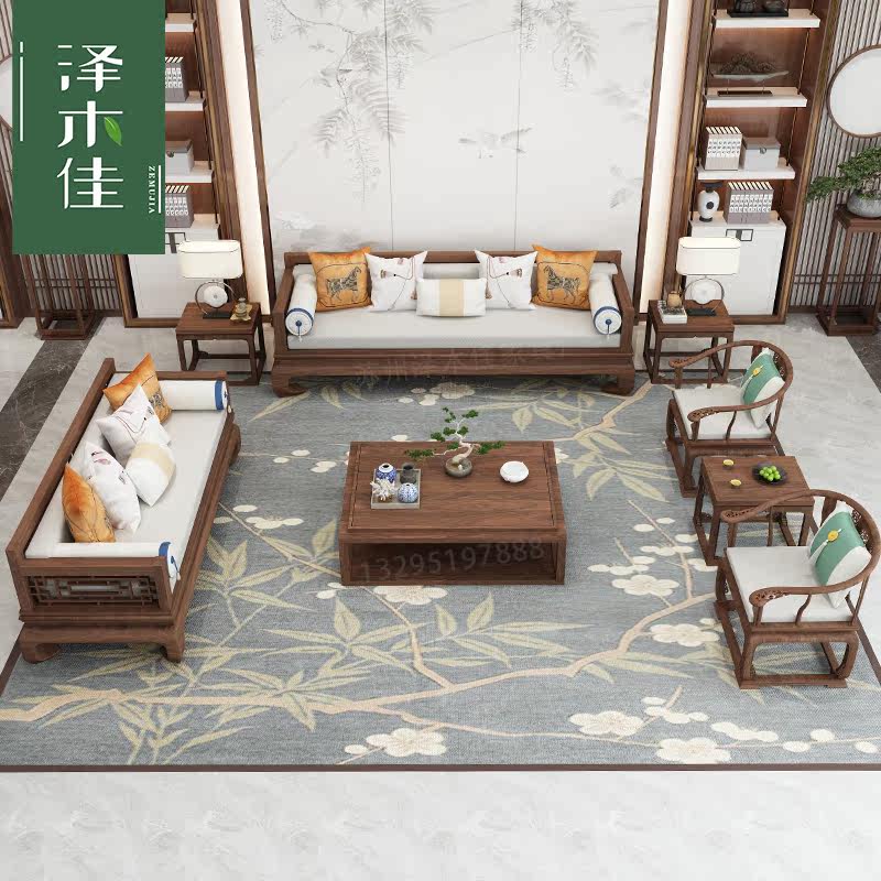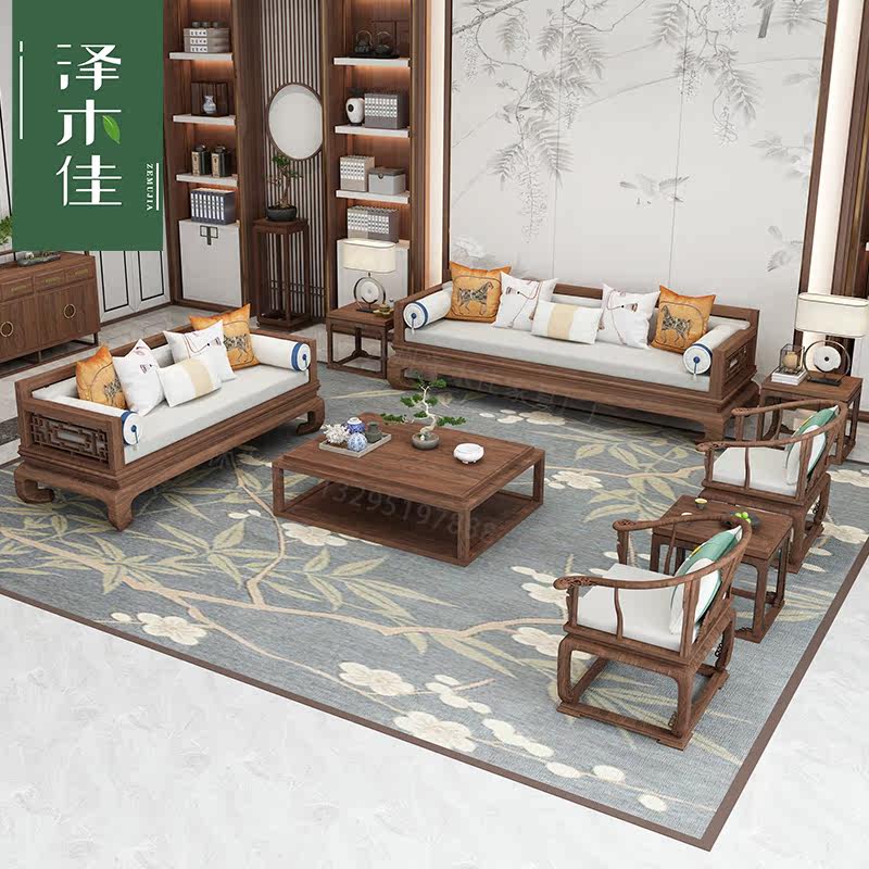 New Chinese style solid wood sofa combination simple light luxury high-end Chinese style Zen fabric Arhat bed and chair customization