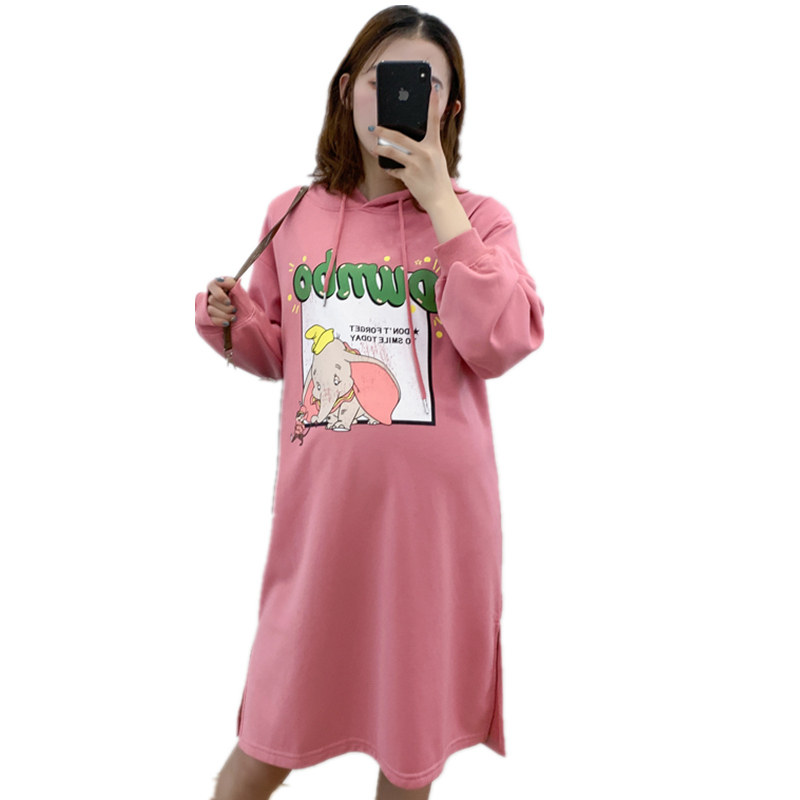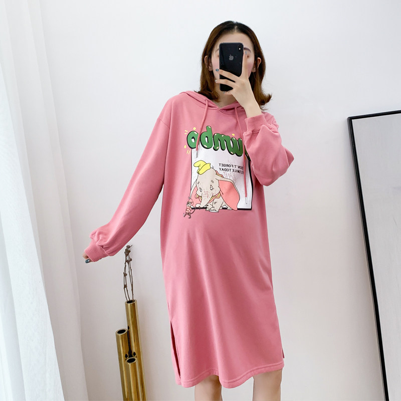 Maternity sweater dress autumn and winter mid-length fashion all-match tide mother breastfeeding clothes cartoon hooded maternity sweater dress