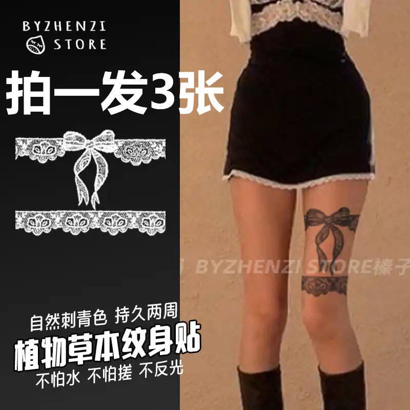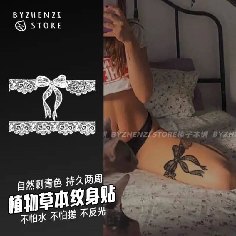 Byzhenzi hazelnut honpo herbal juice tattoo stickers semi-permanent thigh lace bow durable waterproof female