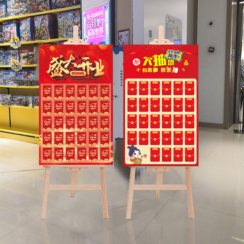 Open Door Red Pine Wood Exhibition Rack Red Envelope Wall Painting Shelf Exhibition Board Kt Board Opening Store Qing Training Admissions Customized Raffle Props