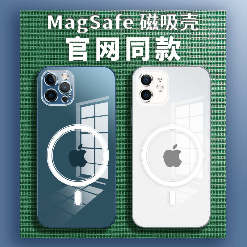 Apple 12 mobile phone protection shell magsafe magnetic attraction transparent iPhone12Pro max liquid silicone 12mini net red tides linen goggle head anti-fall wireless