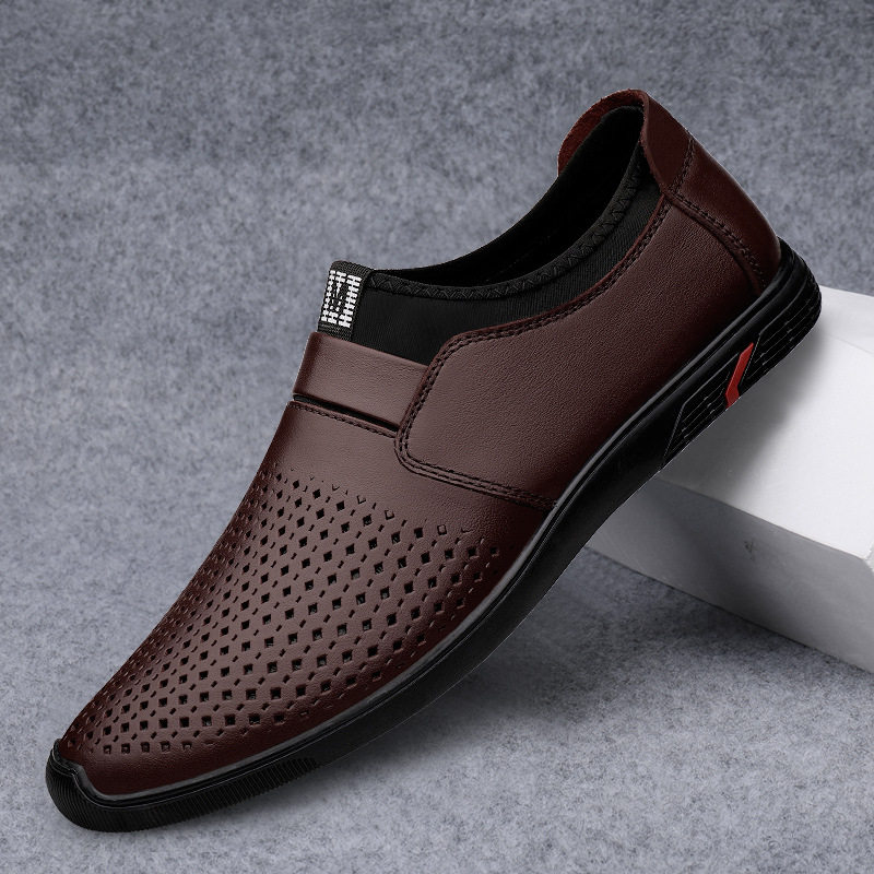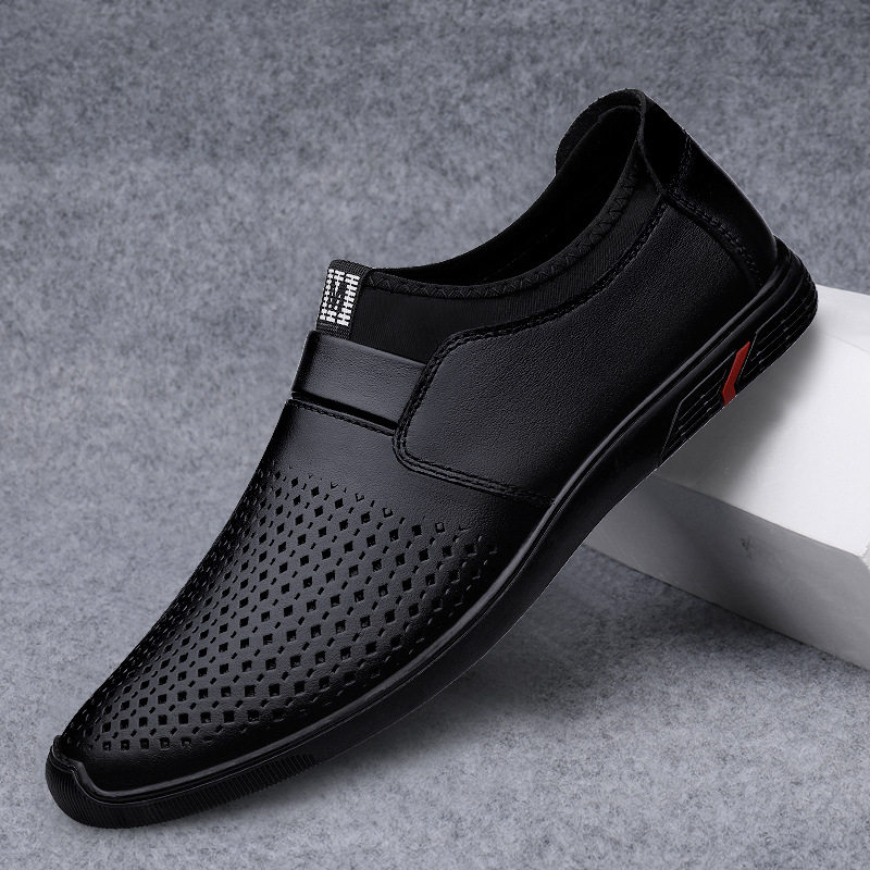 Summer Casual Leather Shoes Man Genuine Leather Soft Bottom Hollowed-out Breathable Business Men's Shoes A Foot Pedal Dongle Shoes Men Cool Leather Shoes
