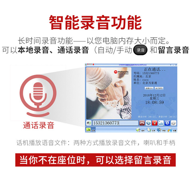 MotorolaCT800RC recording phone usb connected to the computer call card pop-up screen customer service hands-free landline