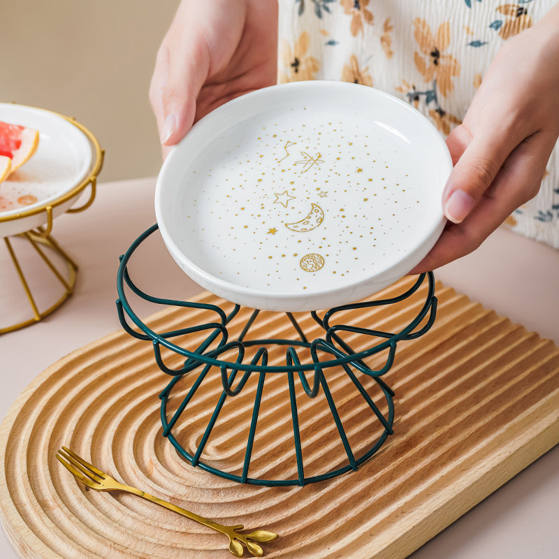 Golden High Tripod Star Blank Disc Green High Tripod Star Blank Disc Gold High Tripod Pure White Pan Green High Tripod Pure Color White Pan Gold Stainless Steel Tree Girl * 2