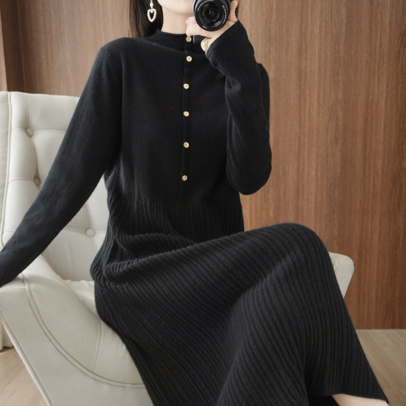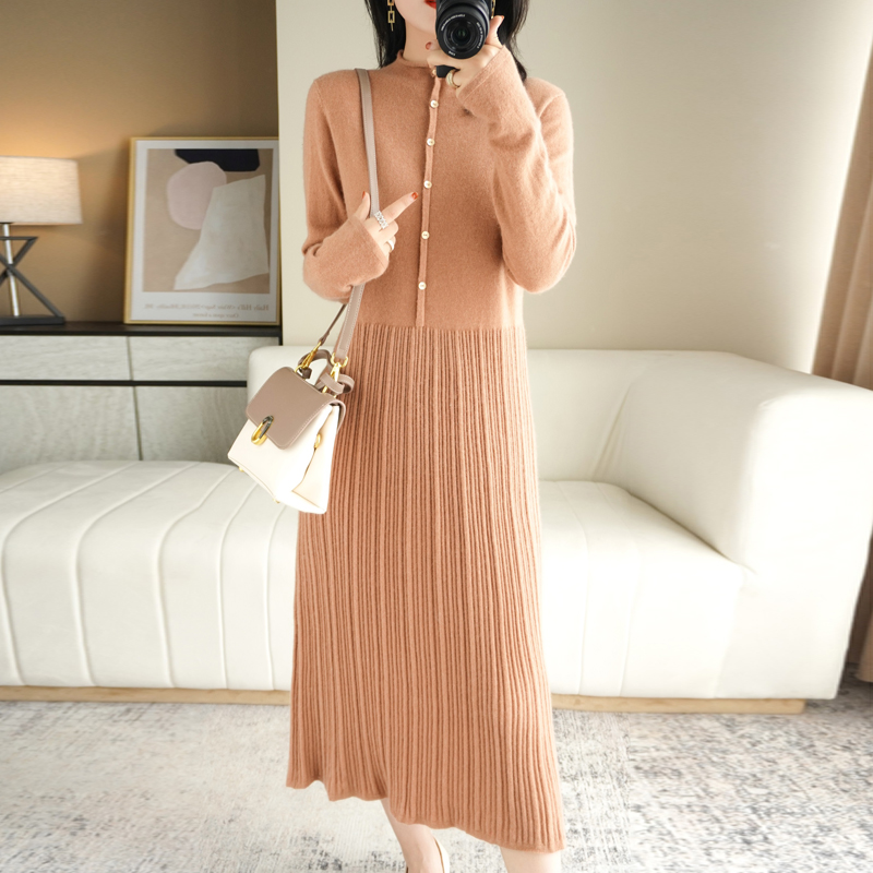 2022 new half turtleneck sweater dress women's autumn and winter mid-length version with western style loose bottoming sweater