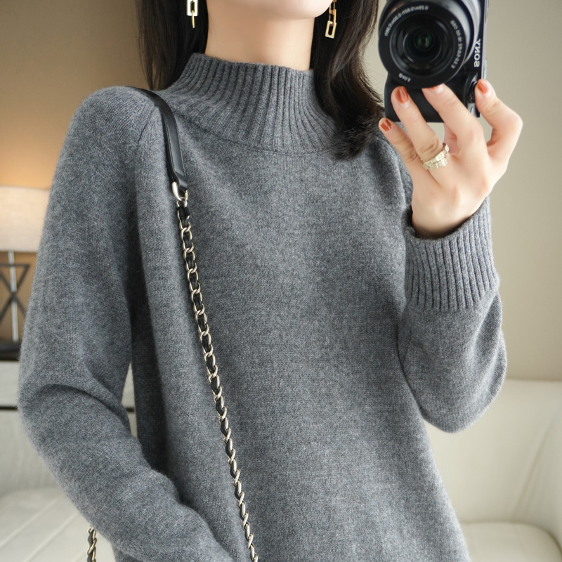 Over Knee Sweater Dress Long Version Autumn Winter Semi-High Collar Knit Foreign Dress Female Hitch Cashmere Sweaters Undershirt Loose