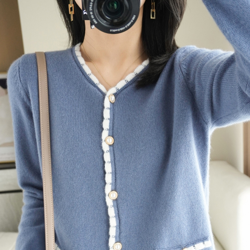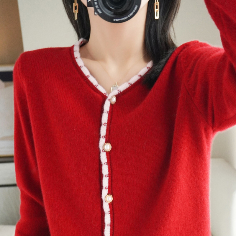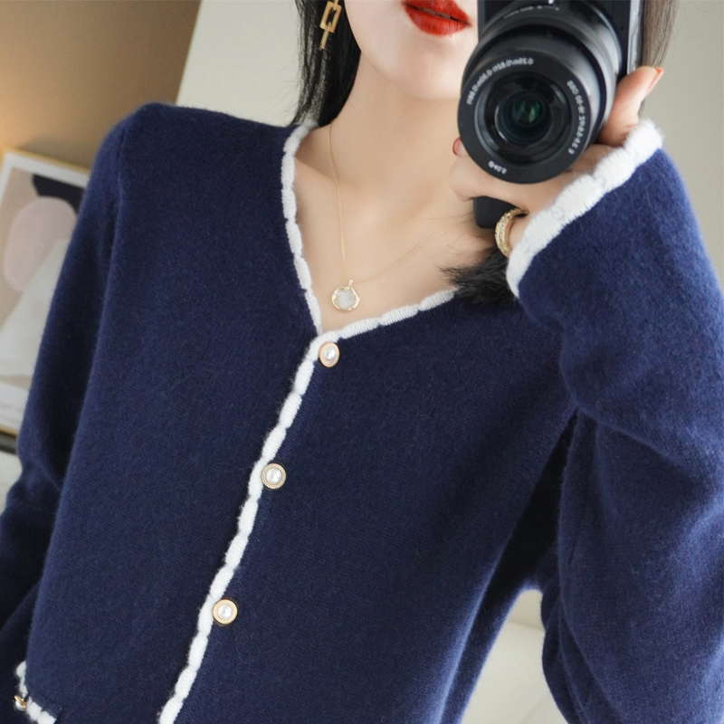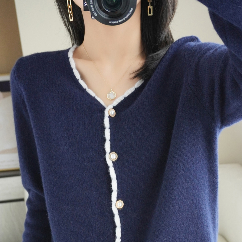 V collar knit cardiovert woman non cashmere loose with small balsamic wind parquet with base sweater jacket non cashmere jacket
