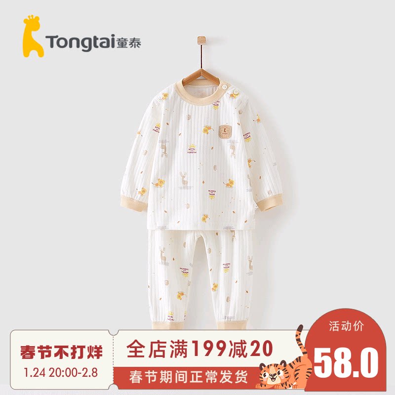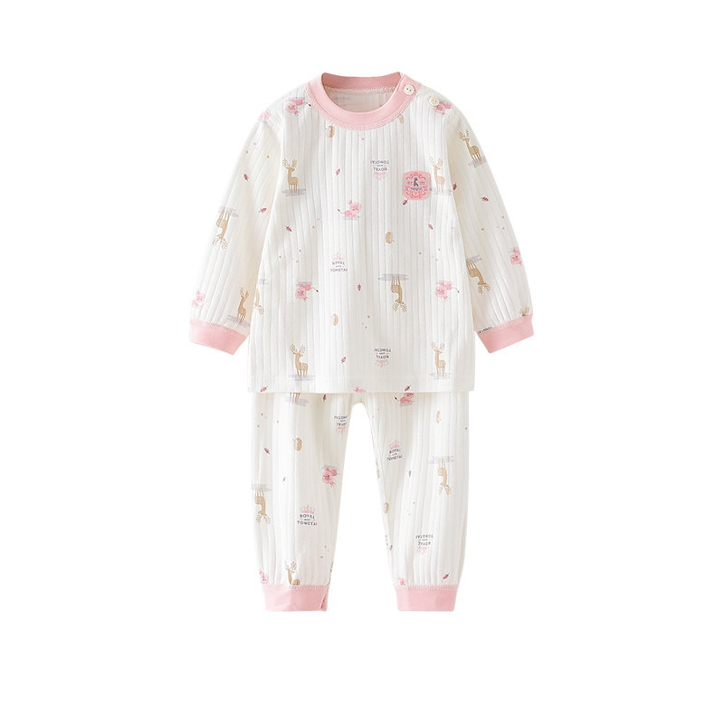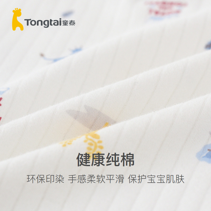 Tongtai Four Seasons 5-3 Years Old Infants and Boys Home Clothes Cotton Shoulder Open Crewneck Underwear Set
