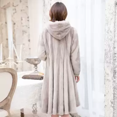 2021 Winter new Haining mink coat female whole mink long version imported mink fashion hooded fur coat