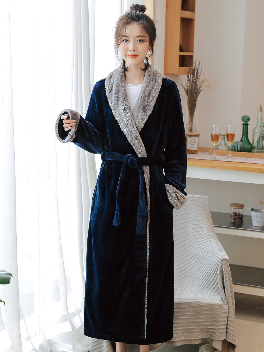 Fall and Winter Sleepgown Woman thickens and long coral velvet lady warm pajamas plus code flannel bathrobe