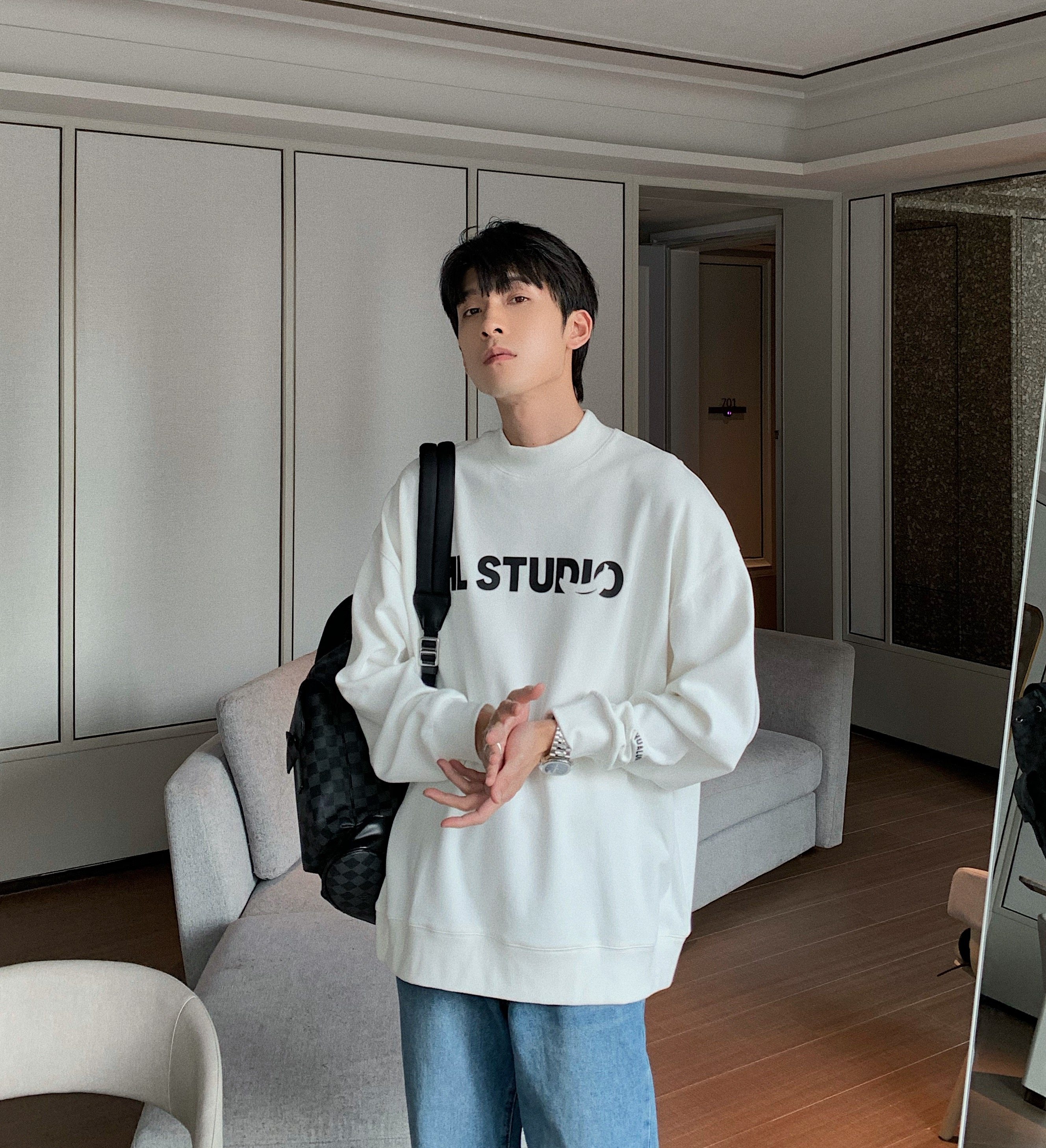 hualun autumn original Tide brand round neck couple sweater men's spring and autumn loose ins pullover without hat white top