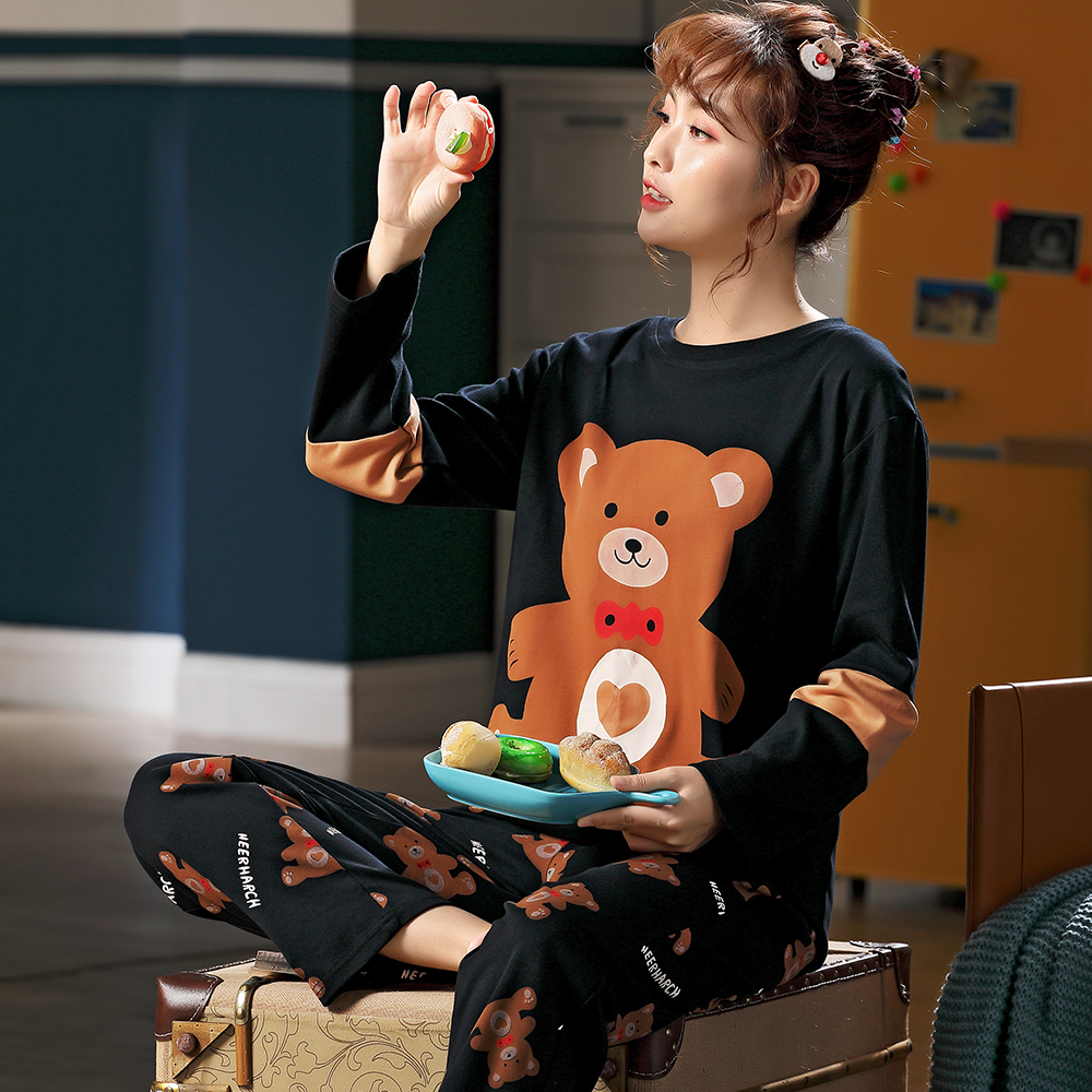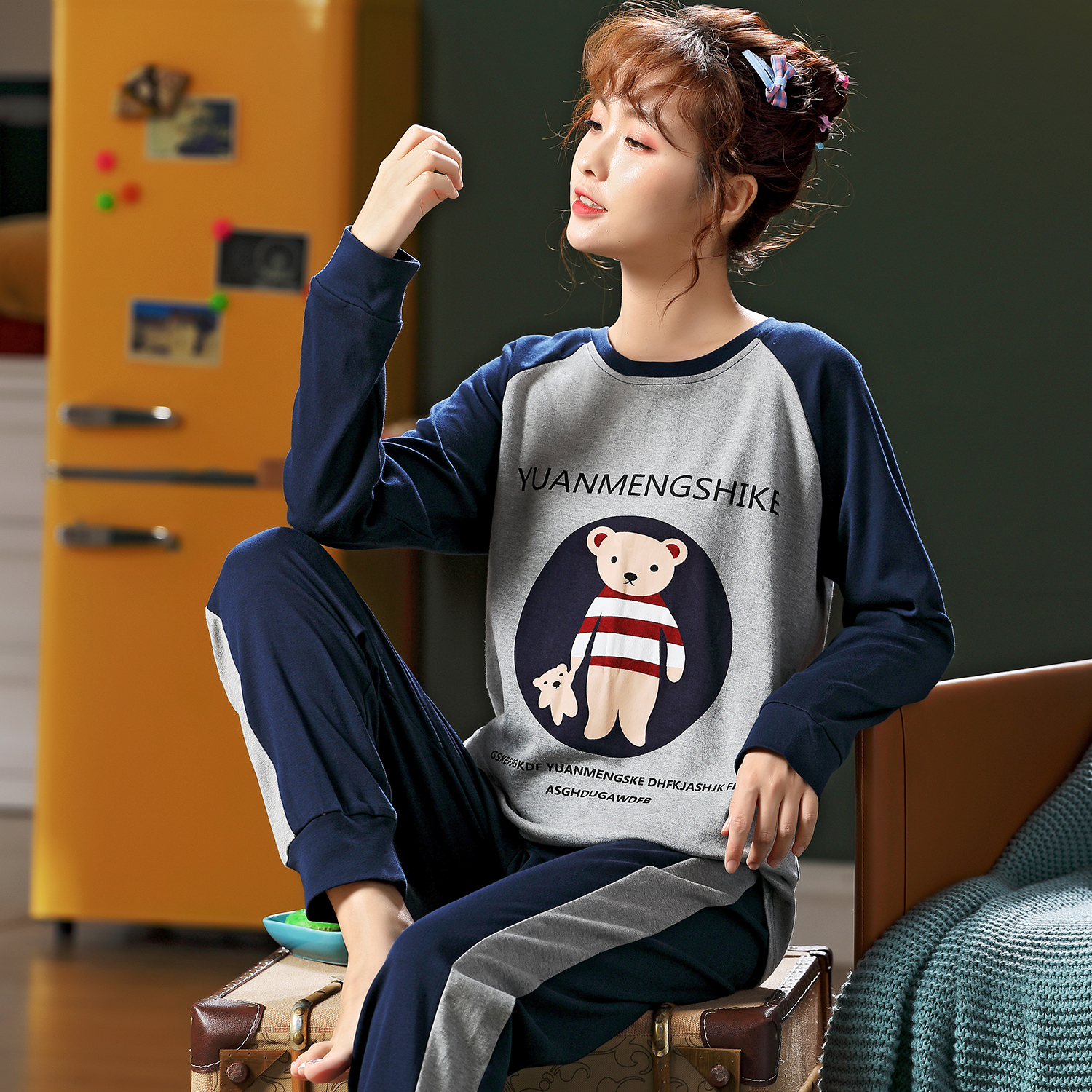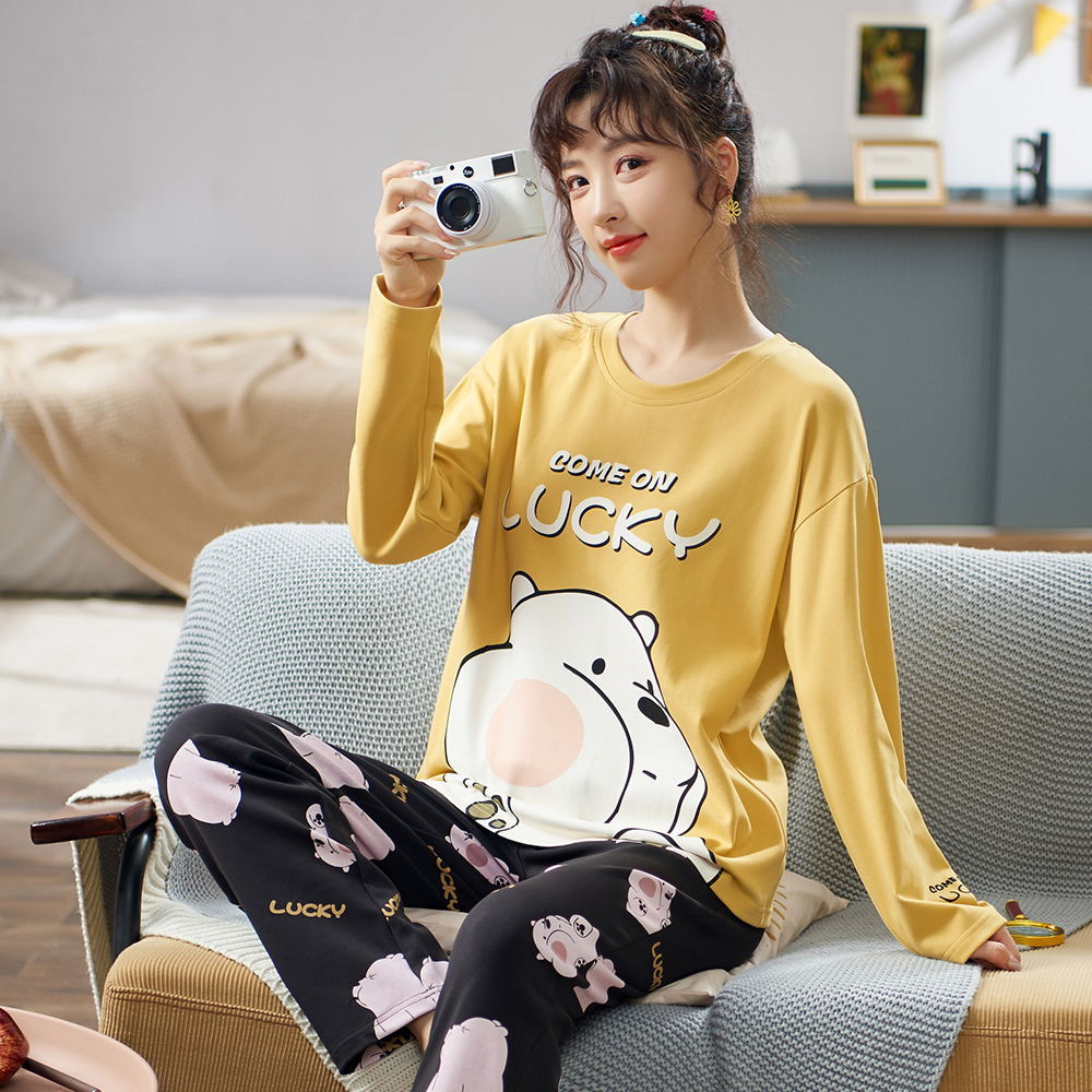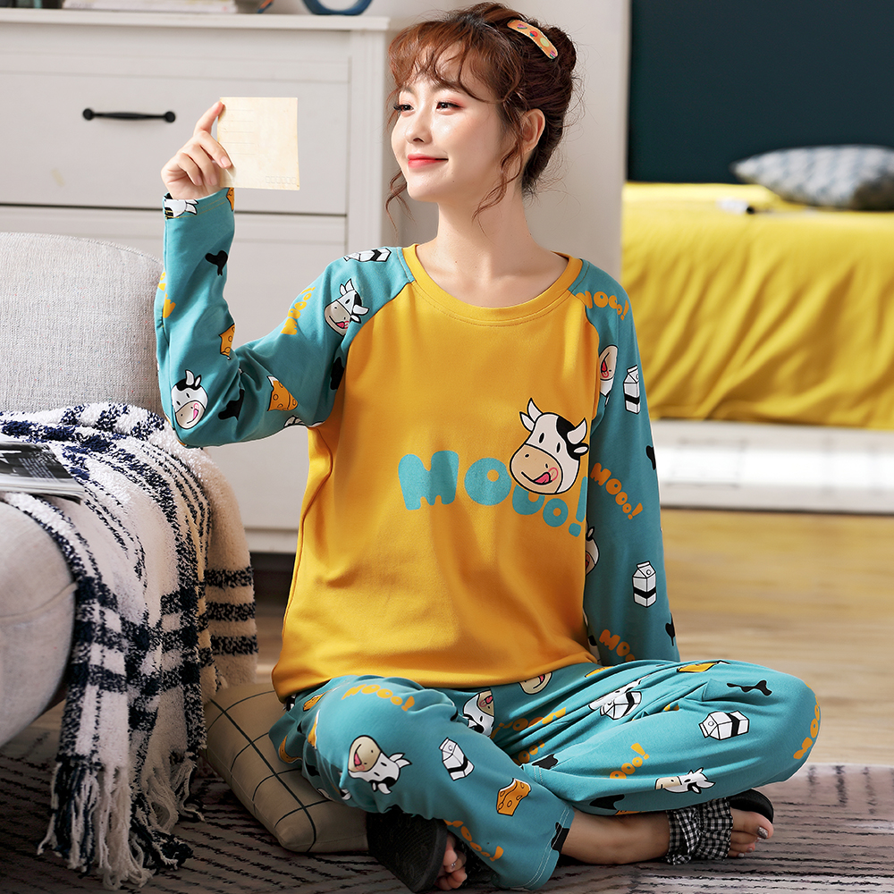 Spring and autumn cotton long-sleeved ladies pajamas 2022 new home clothes autumn and winter cartoon large size 200 catties suit