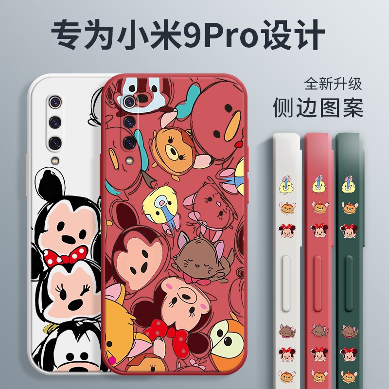 Xiaomi 9 phone protection shell new Xiaomi 9pro liquid silicone gel 9se protective sleeve por full bag lens rice 9 anti-fall creative stacking Mickey cartoon side housing ins Chauffes net red male and female