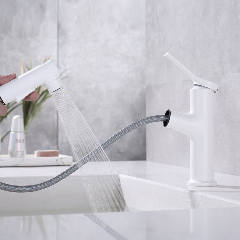 German Kadbandy white pull-out basin faucet single-hole bathroom cabinet telescopic faucet can wash head and mouth