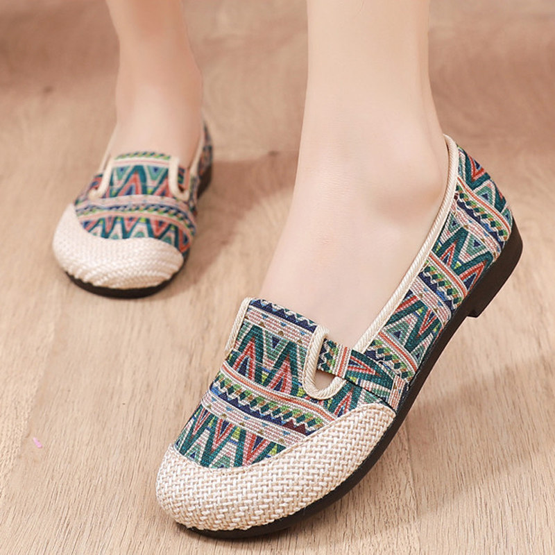 Old Beijing shoes woman in summer one foot lazy shoes 2021 knitting fishermen shoes national wind single shoes Lefu shoes