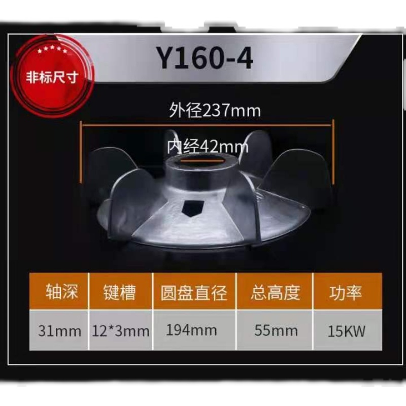 Motor aluminum wind blade Y160 inner diameter 43mm inner diameter 42mm outer diameter 237mm power 15kw motor accessories